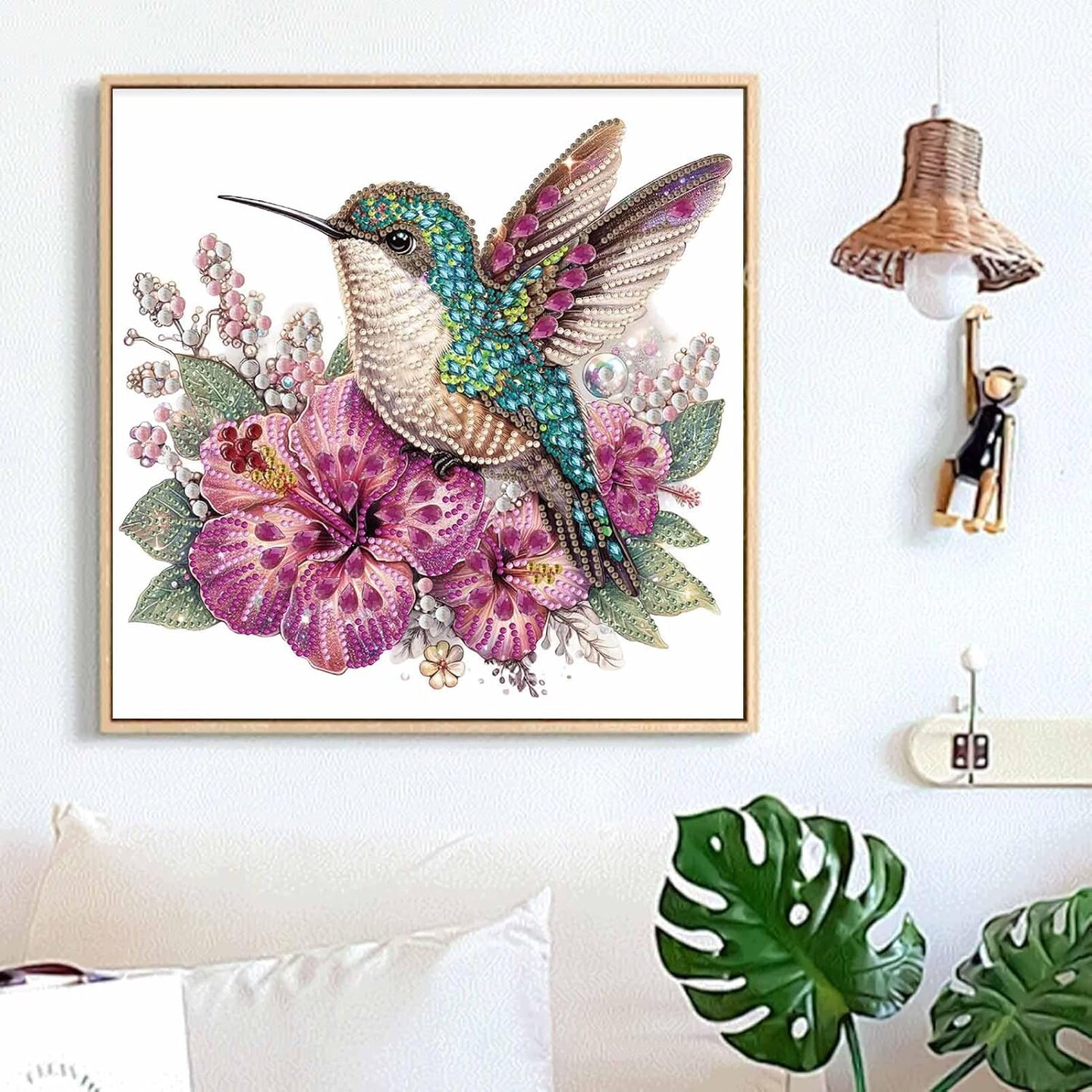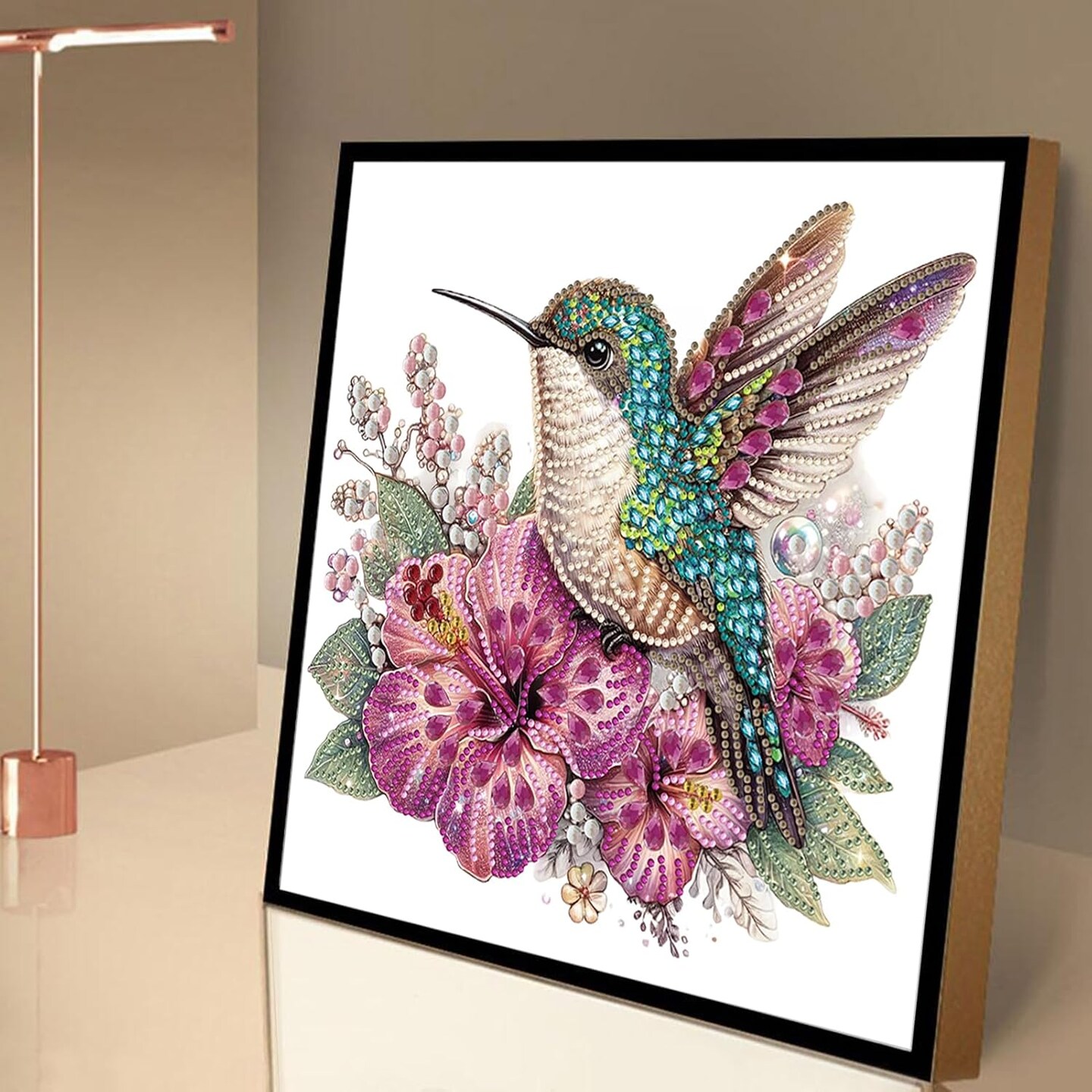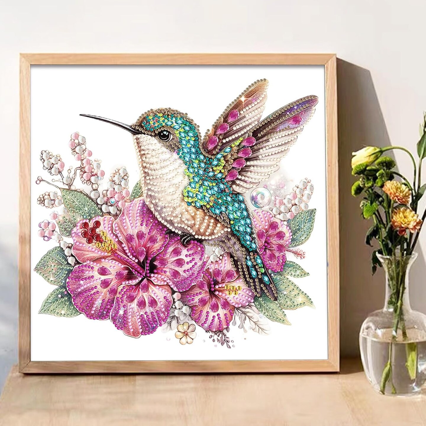 5D Special Shape Diamond Painting Art, Diamond Painting Kits for Adults Beginners, Crystal Rhinestones for Home Wall Decoration Gift, Hummingbird and Floral Design