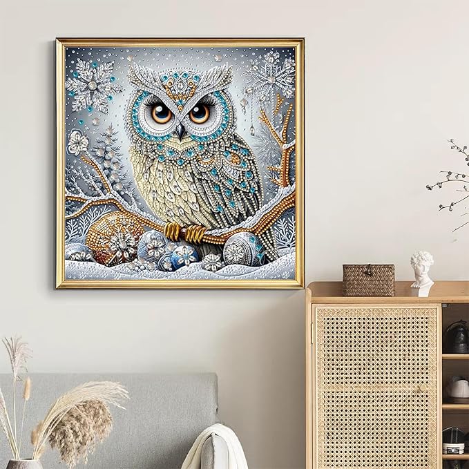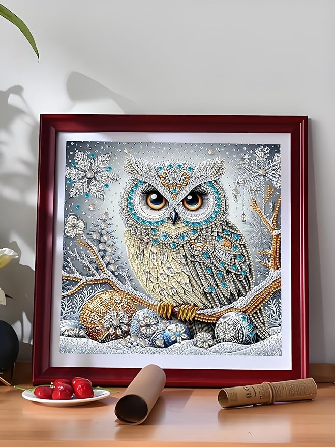 5D Special Shape Owl Diamond Art Painting Kits for Adults, Crystal Rhinestones Diamond Painting, Gem Diamond Dots Crafts for Beginners DIY, Home Wall Festival Decor Gift, 12x12inch