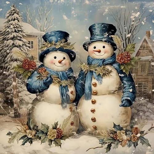 5D Winter Christmas Diamond Painting Kits for Adults Beginners,Christmas Winter Snowman House Diamond Art Kit,DIY Full Round Drill Diamond Dot Gem Art Kits for Adults,Home Wall Decor 13.78x13.78 Inch