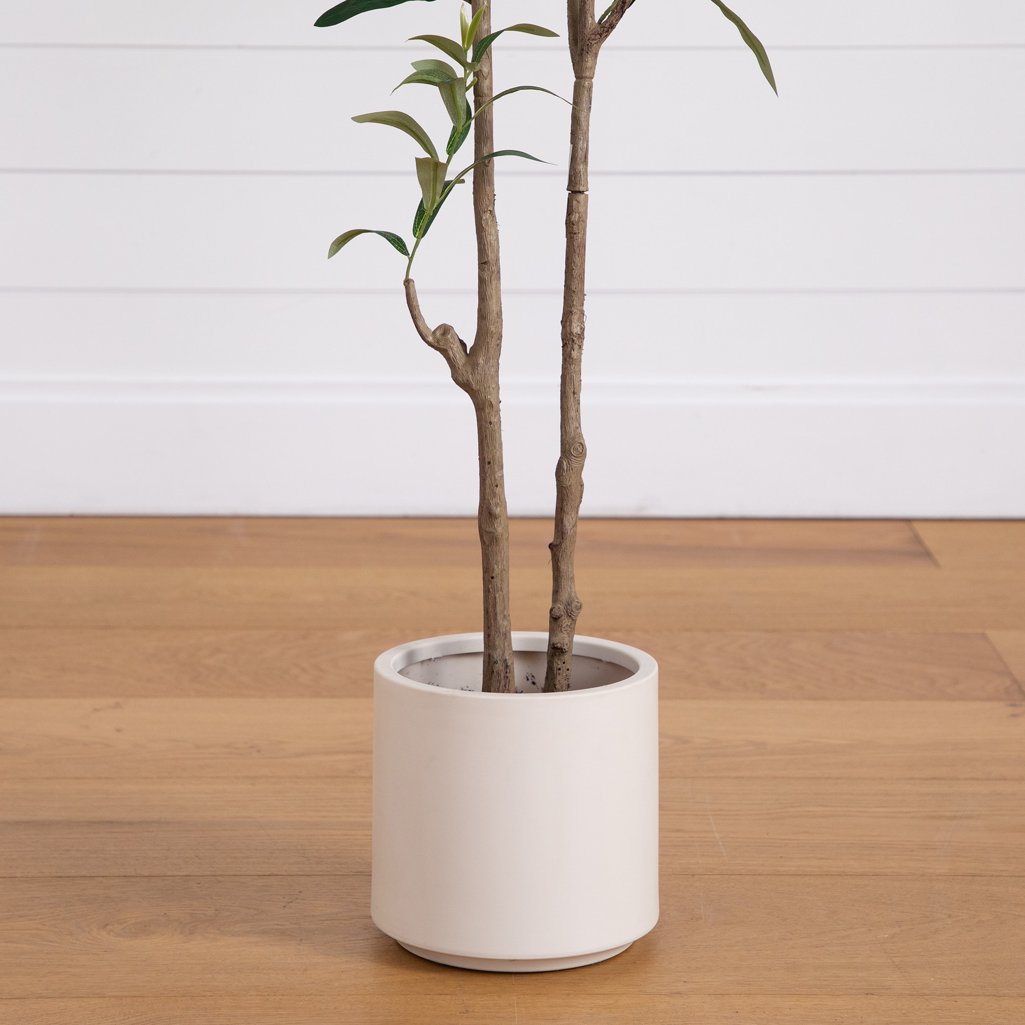 5ft. Artificial Minimalist Olive Tree in White Decorative Planter