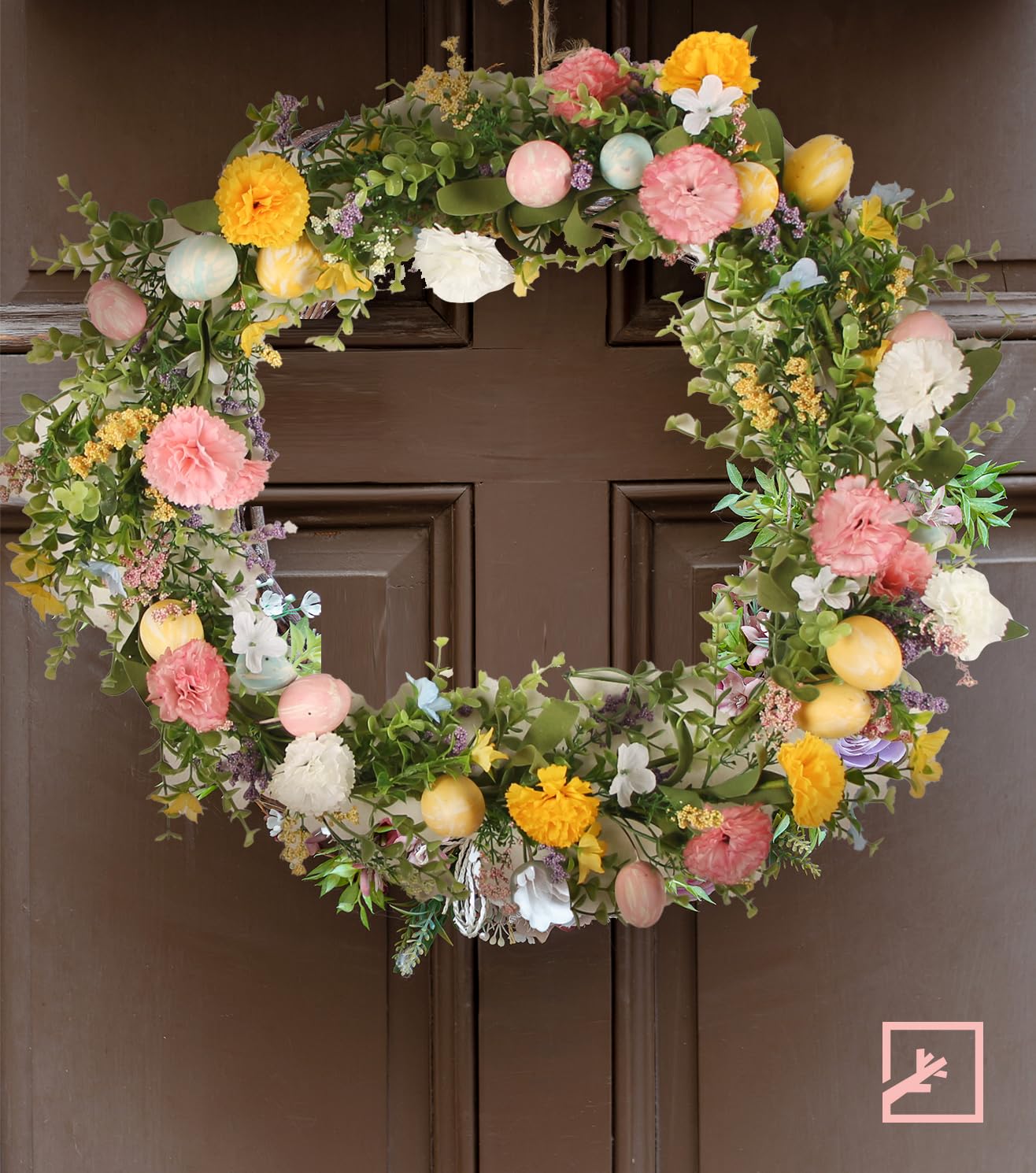 5FT Easter Garland Spring Vine with Easter Eggs Flowers Berries for Rustic Mantle Arch Home Table Tree Decoration