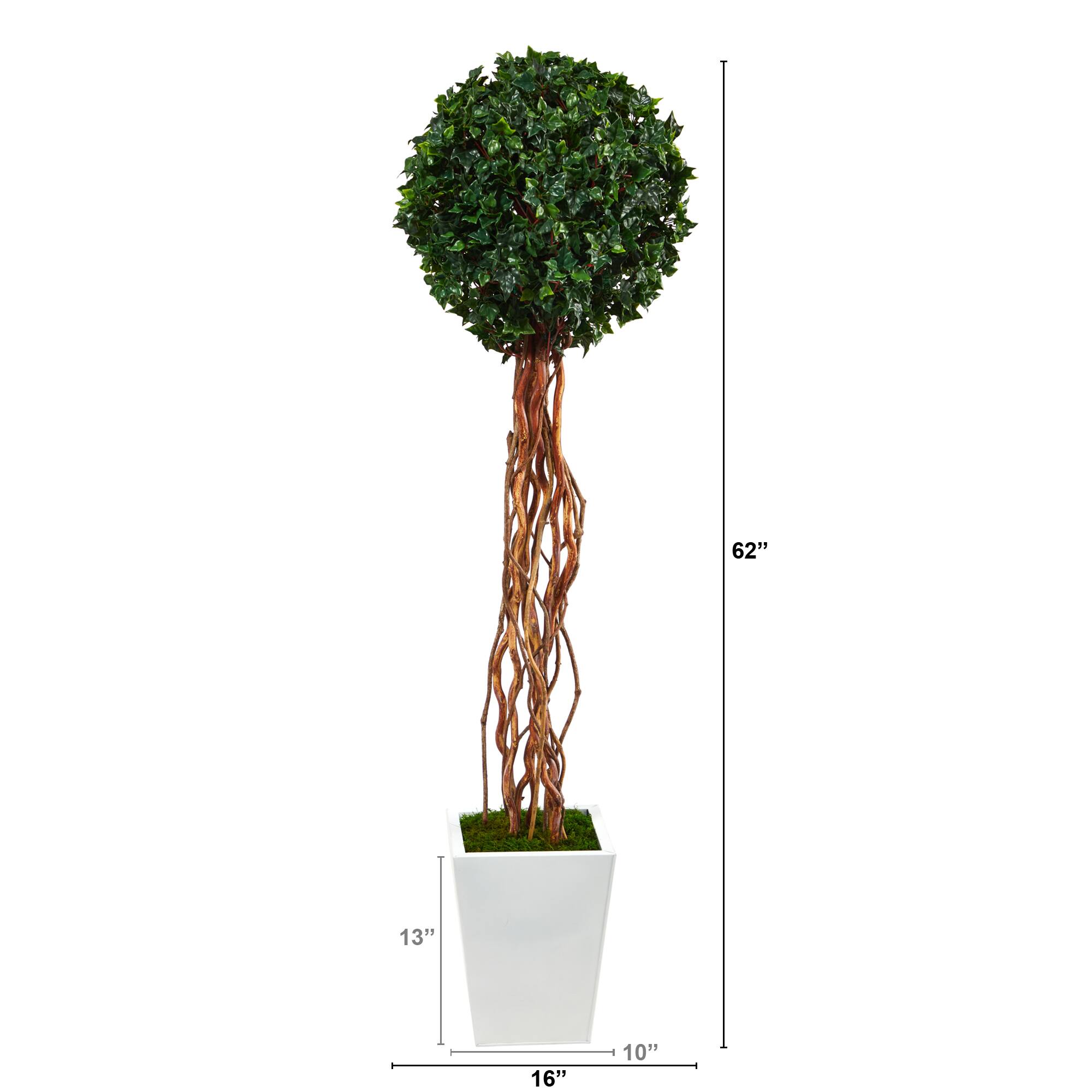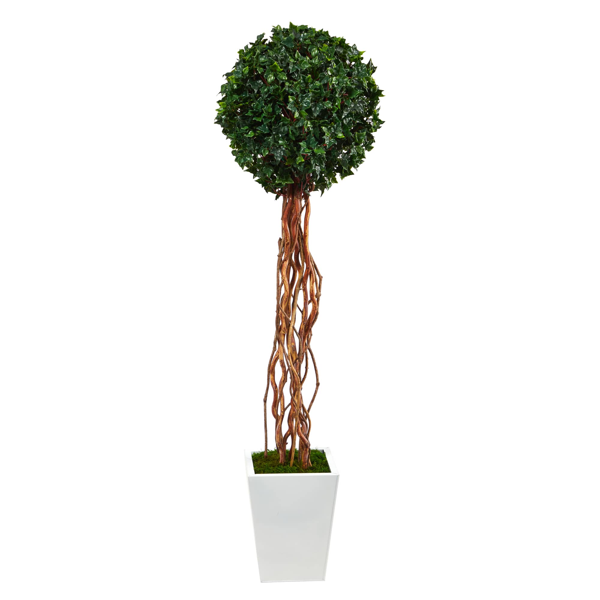 5ft. English Ivy Single Ball Artificial Topiary Tree in White Metal Planter UV Resistant (Indoor/Outdoor)