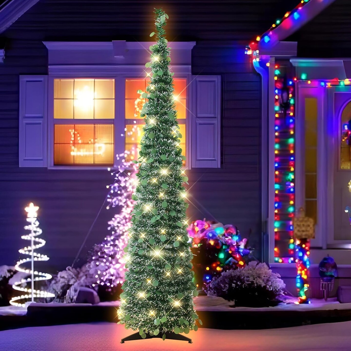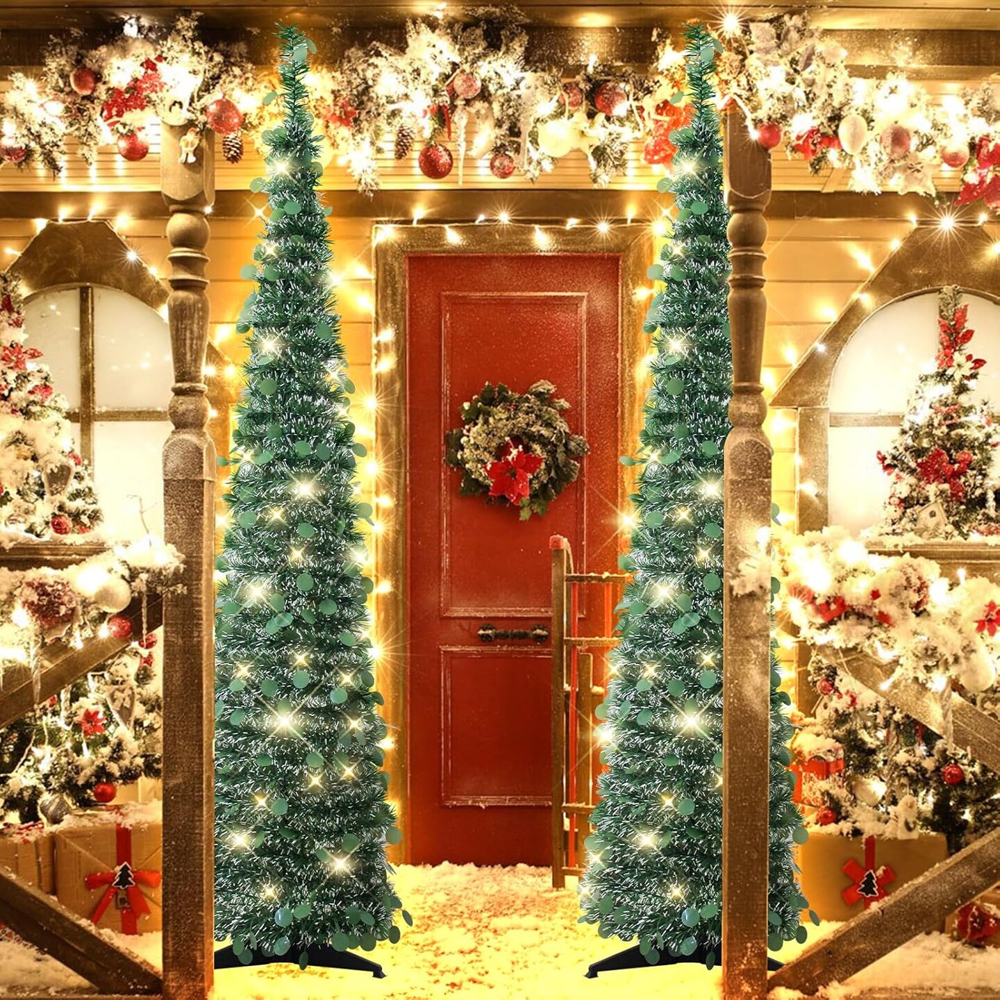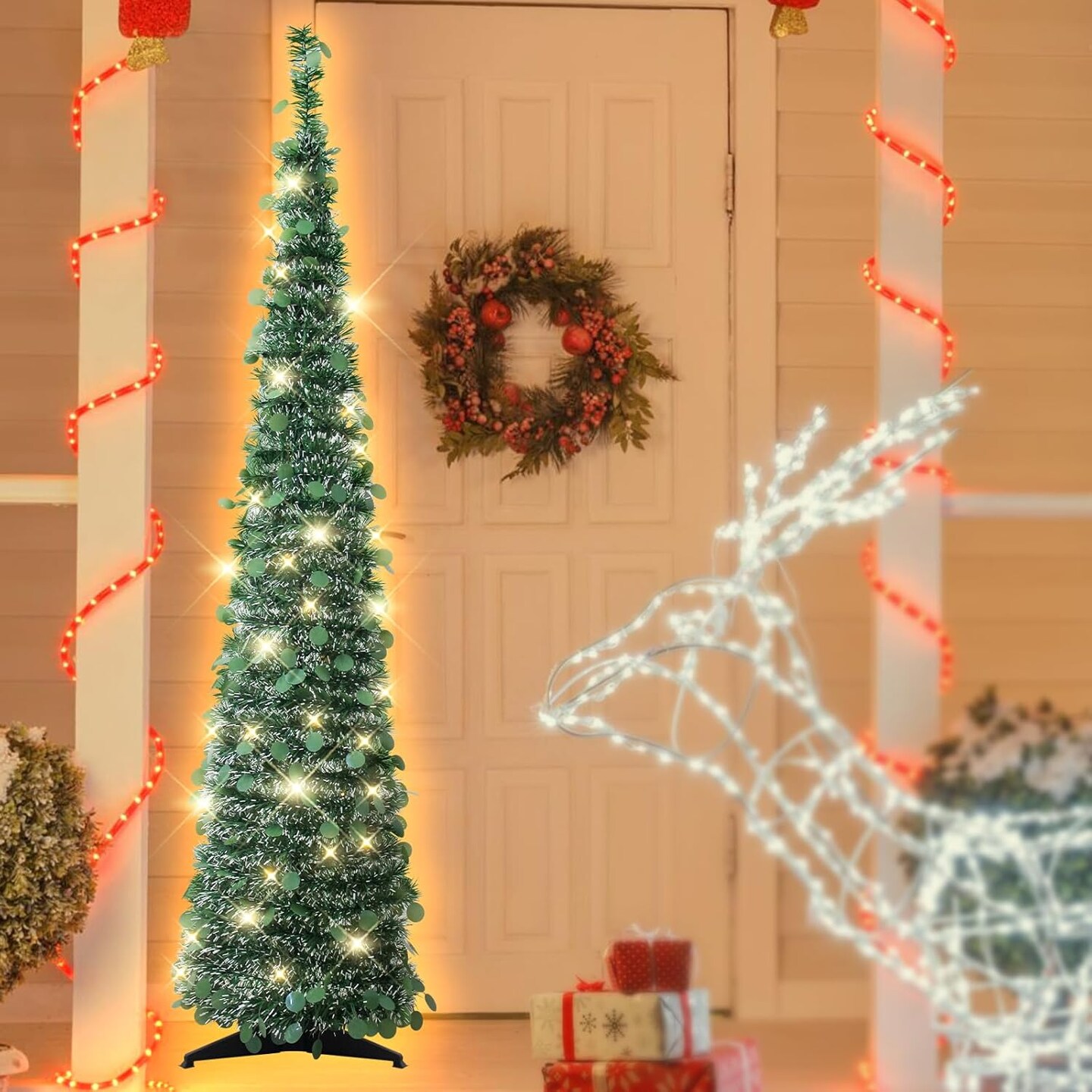 5FT Pop up Christmas Tree for St Patrick's Day(5ft Green White Branches)14"D x 14"W x 60"H
