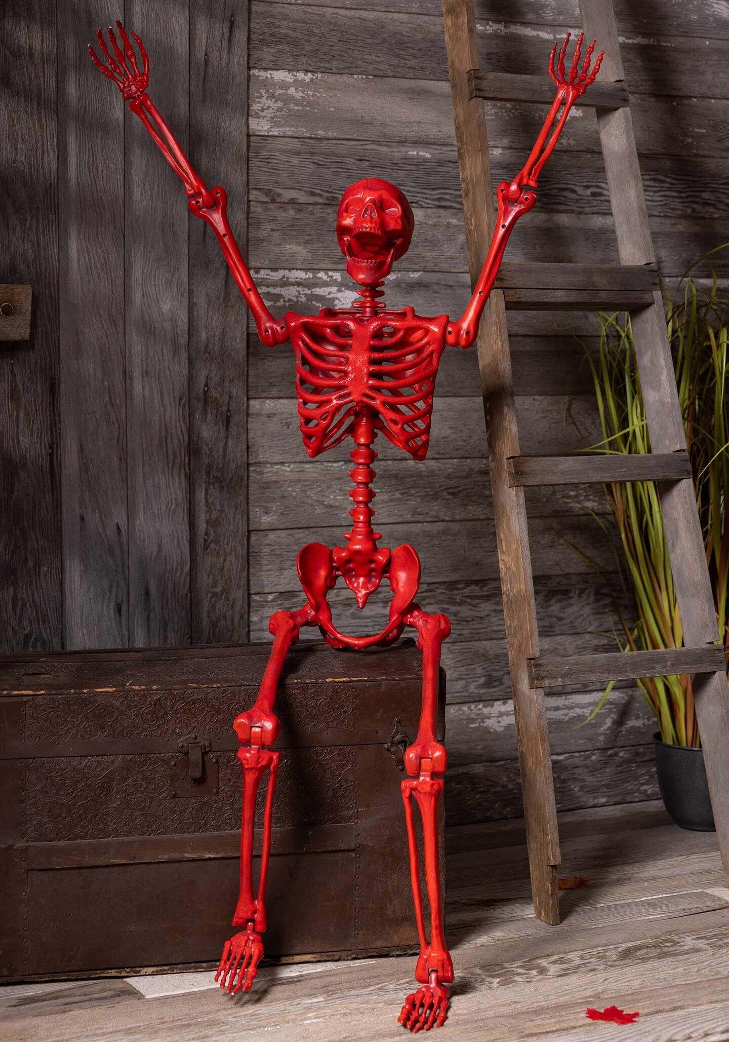 5FT Poseable Crazy Bones Skeleton in Red Decoration