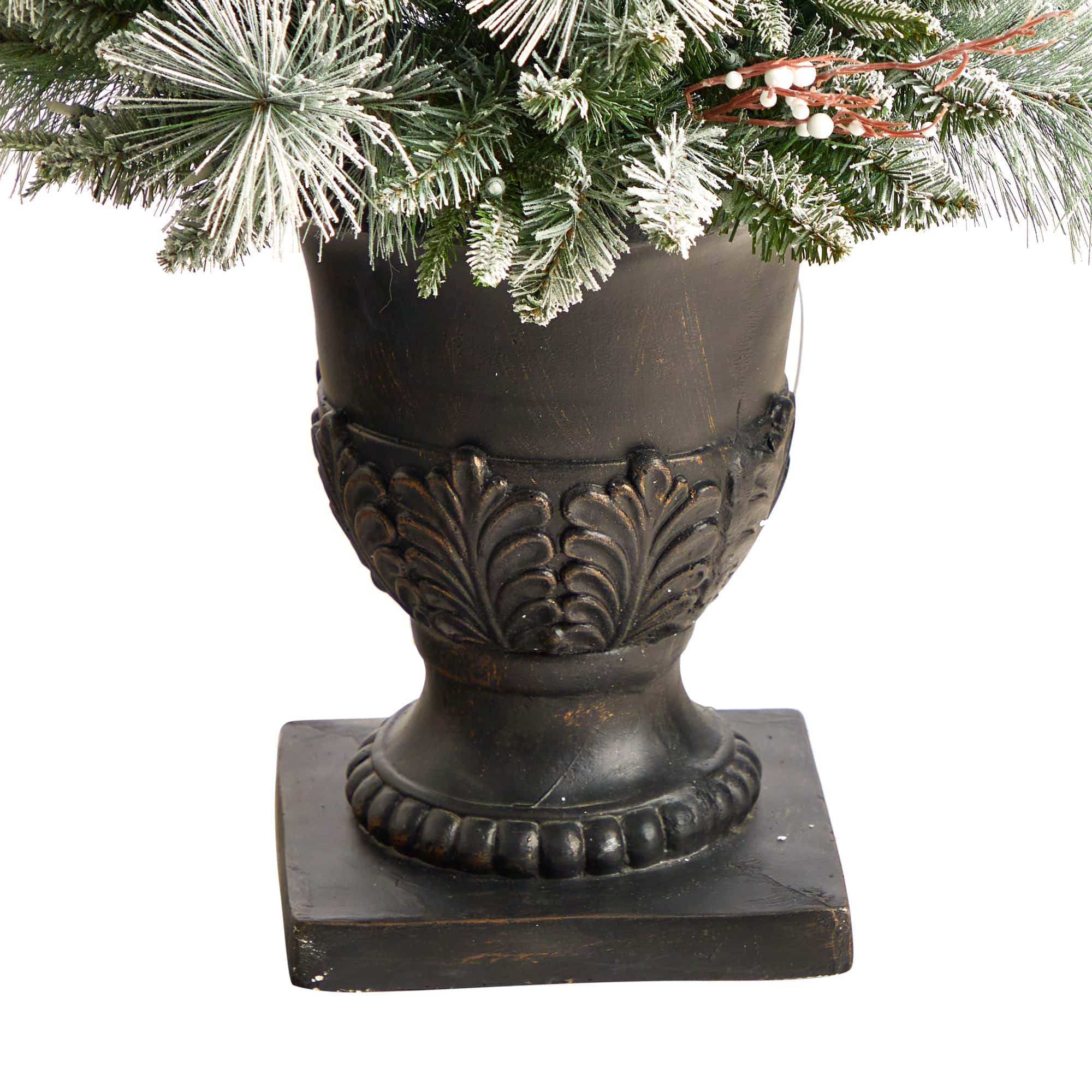 5ft. Pre-Lit Flocked Artificial Christmas Tree in Decorative Urn, White LED Lights