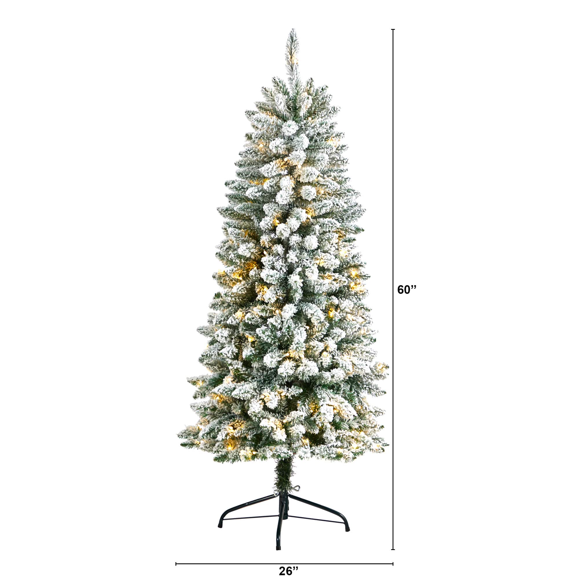 5ft. Pre-Lit Flocked Montreal Fir Artificial Christmas Tree, Warm White LED Lights