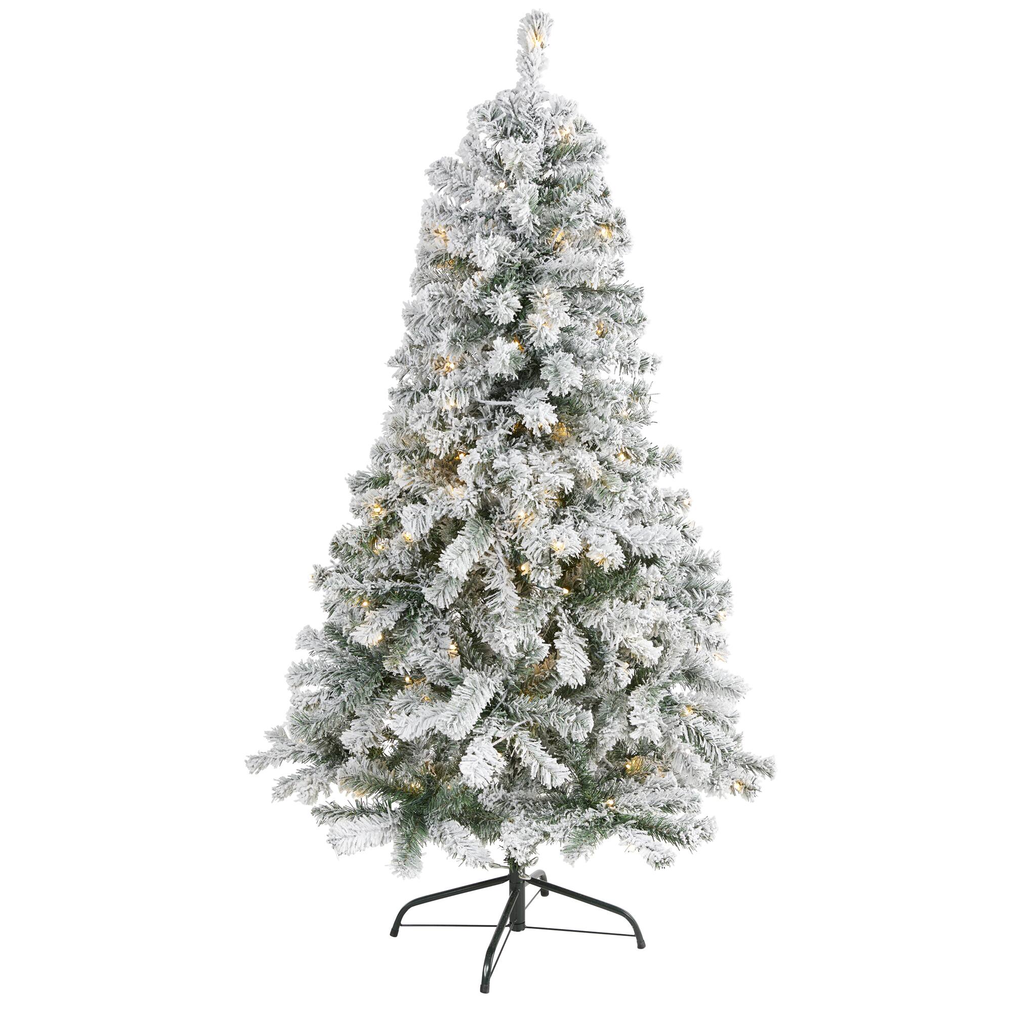 5ft. Pre-Lit Flocked Rock Springs Spruce Artificial Christmas Tree with Clear LED Lights
