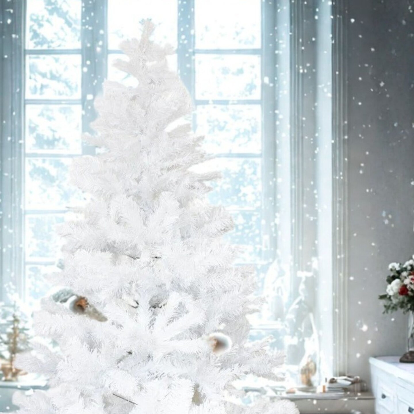 5ft White Classic Canadian Pine Christmas Tree with Hinged Branches and Stand