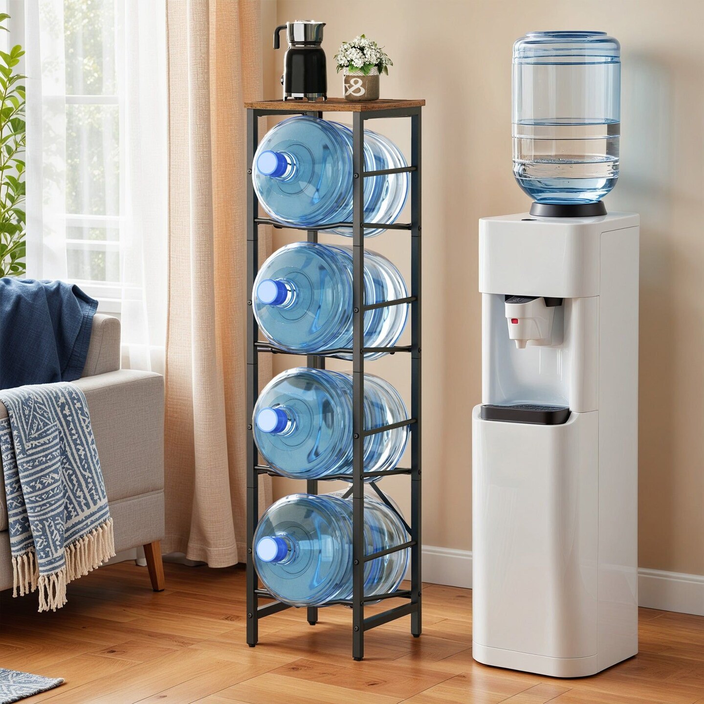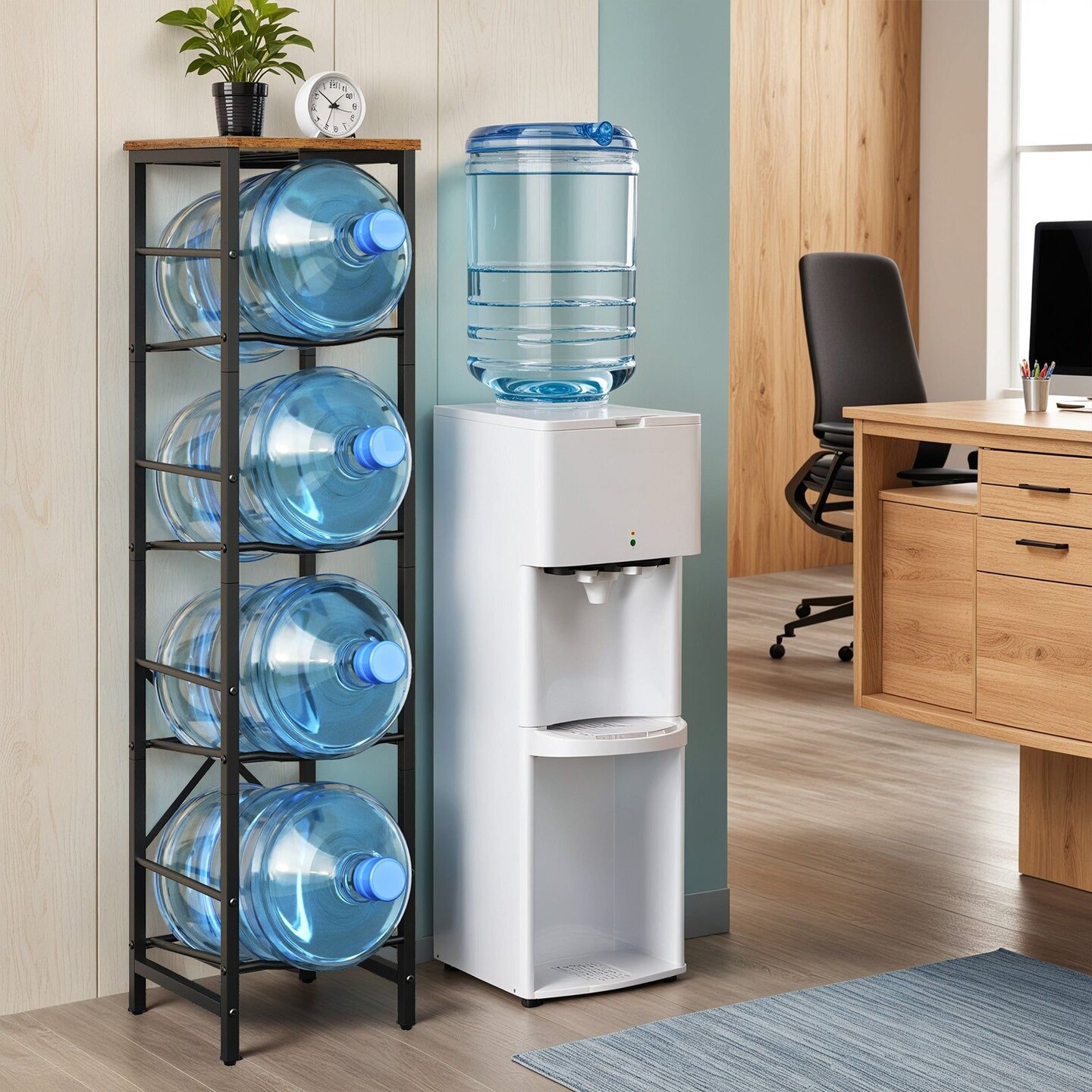 5-Gallon Water Dispenser Stand Metal Particleboard Brown