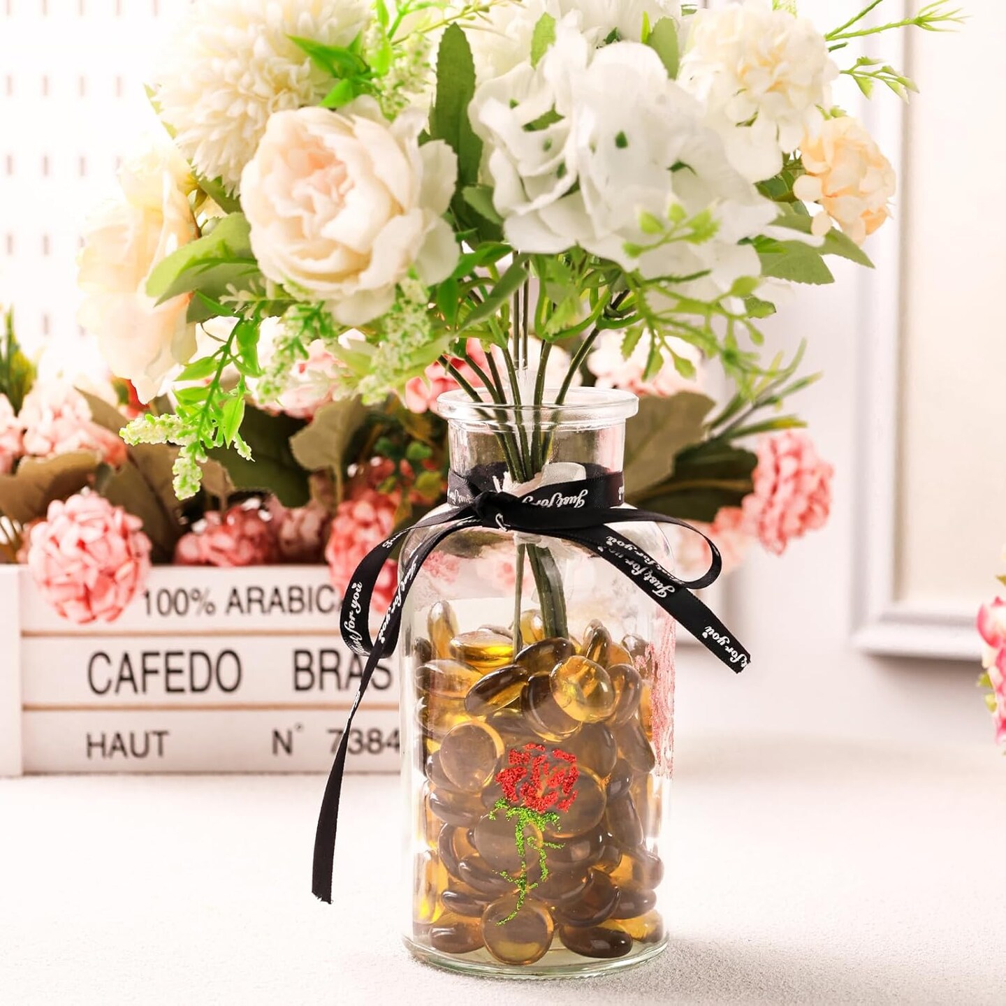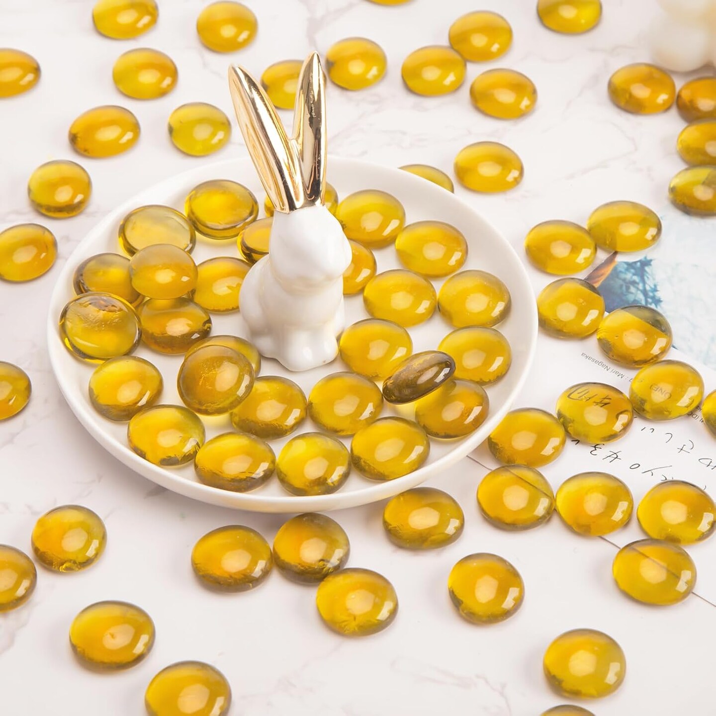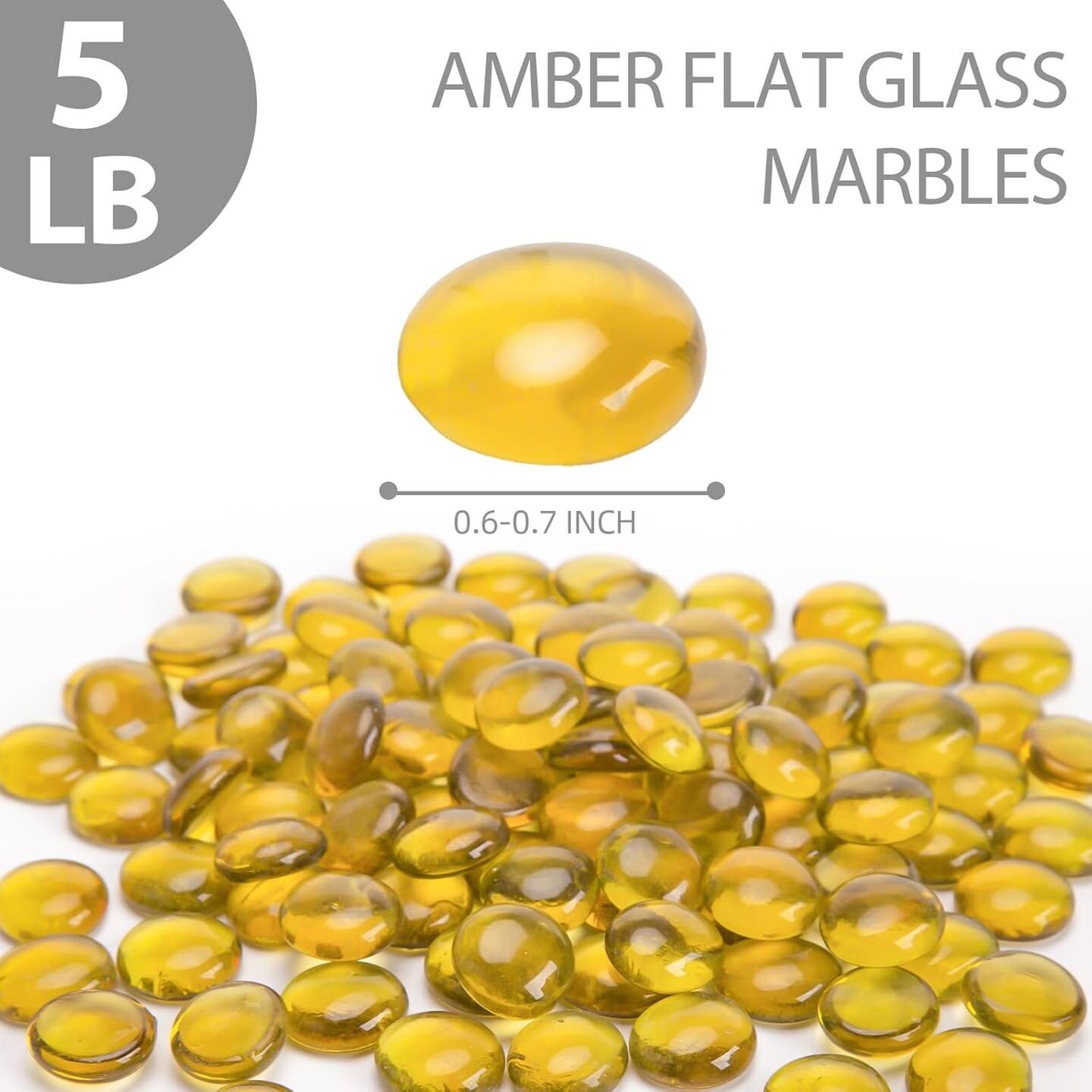5Lb Flat Glass Marbles, 500PCS Amber Yellow Vase Filler Beads Flat Gems Decorative Glass Stones for Table Scatter Hydroponic Plant Decor