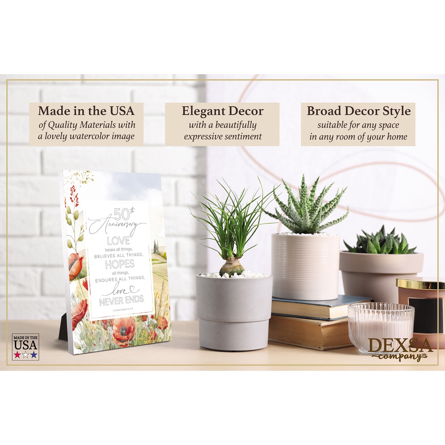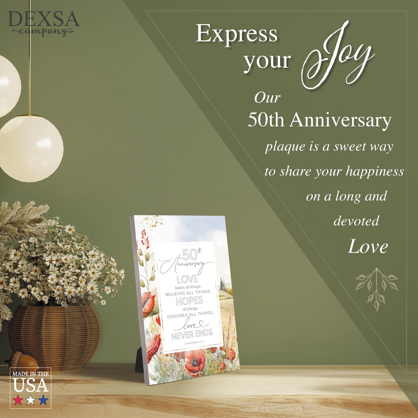 5oth Anniversary Wood Plaque with Easel and Hook Wall Tabletop Art - 6 inches x 9 inches