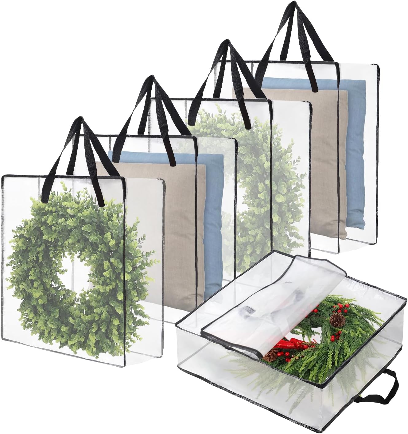 5-Pack 26” Wreath Storage Bags – 95L Large Capacity Garment & Holiday Decoration Organizer for Wreaths, Bedding, Pillows, Clothes, and Seasonal Storage