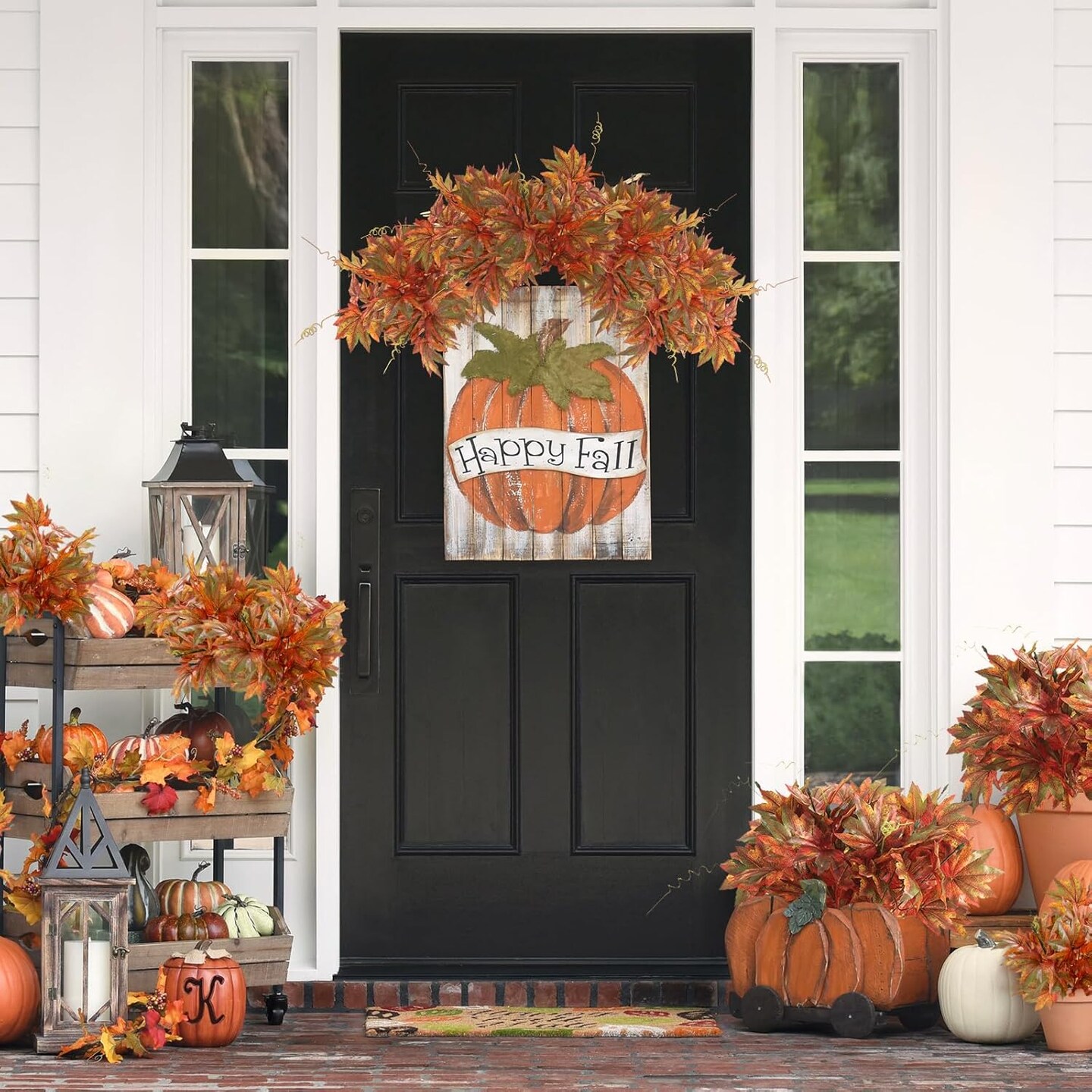 5-Pack Artificial Maple Bushes – 17.7” Faux Silk Maple Leaf Stems for Fall, Thanksgiving, Halloween, Weddings, Table Centerpieces, Indoor & Outdoor Home Décor