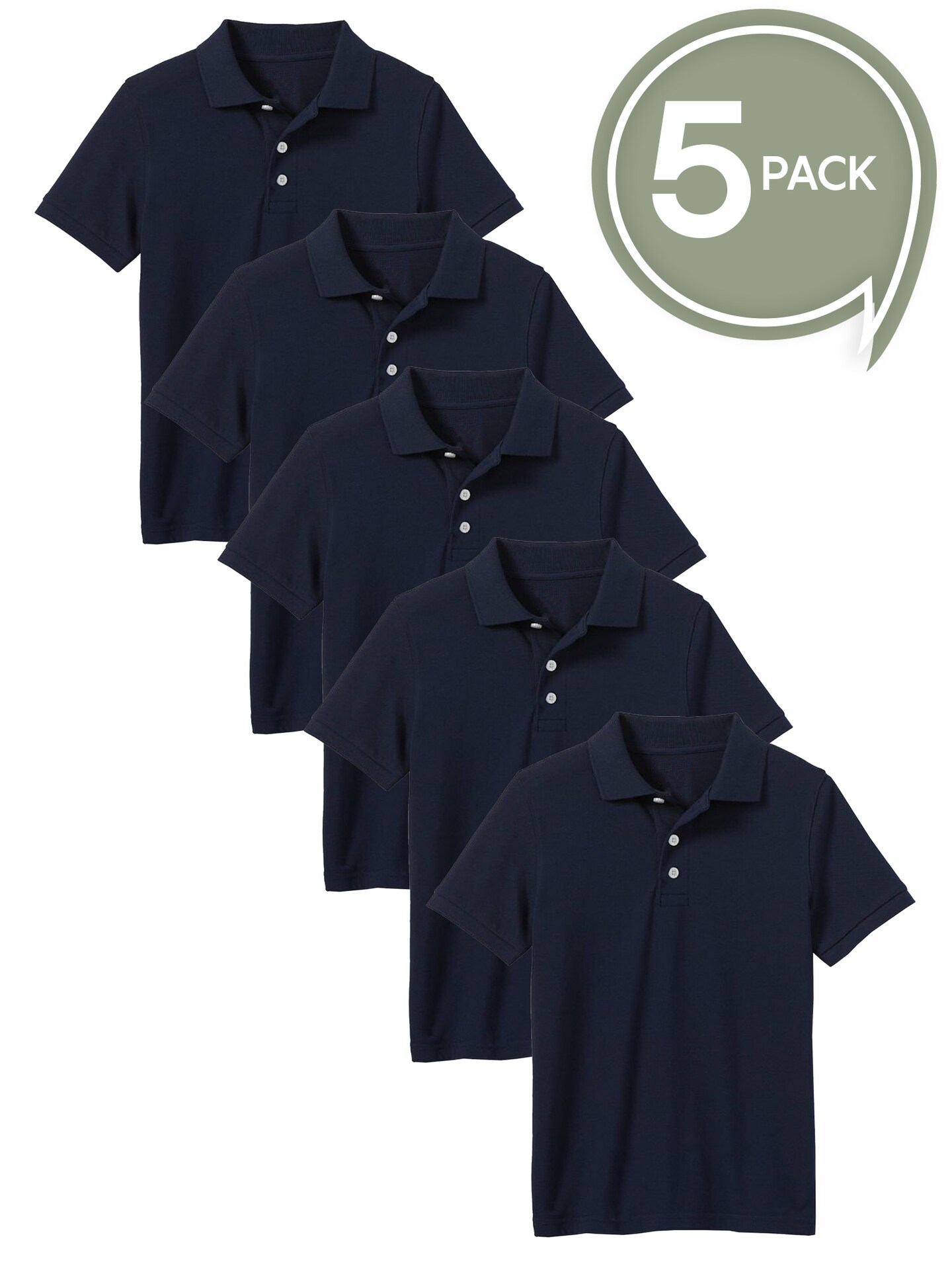 5-Pack School Uniform Tagless Polo Tshirt for Little Boys & Big Boys
