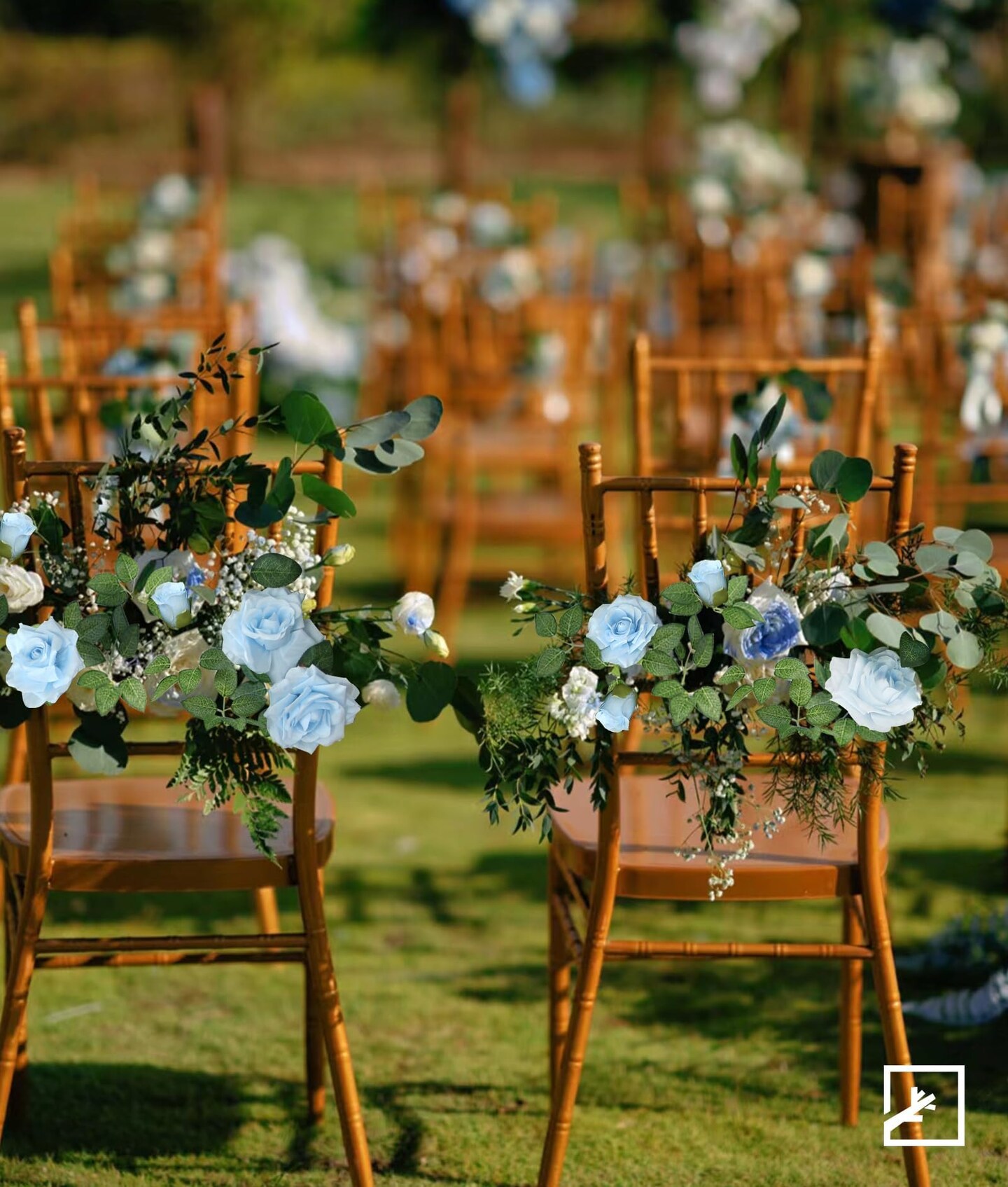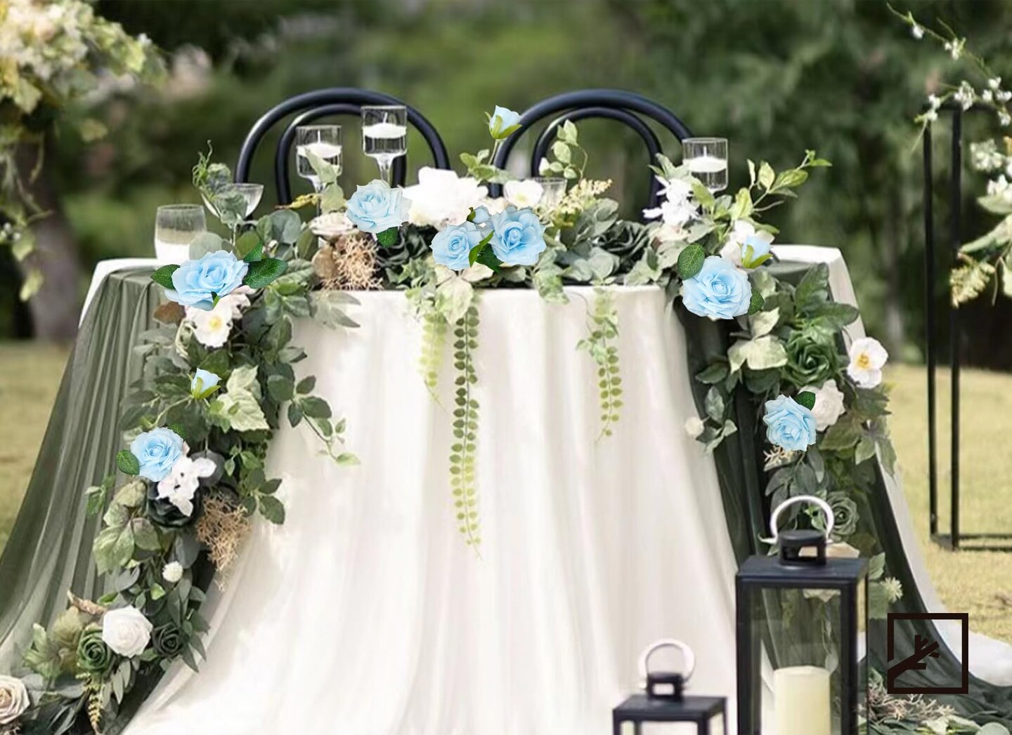 5Pcs 32.5FT Blue Rose Garland Fake Flower Vines Faux Artificial Floral Garland Hanging Rose Ivy for Wedding Arch Garden Ceremony Background Valentine's Day Outdoor Wall Decor