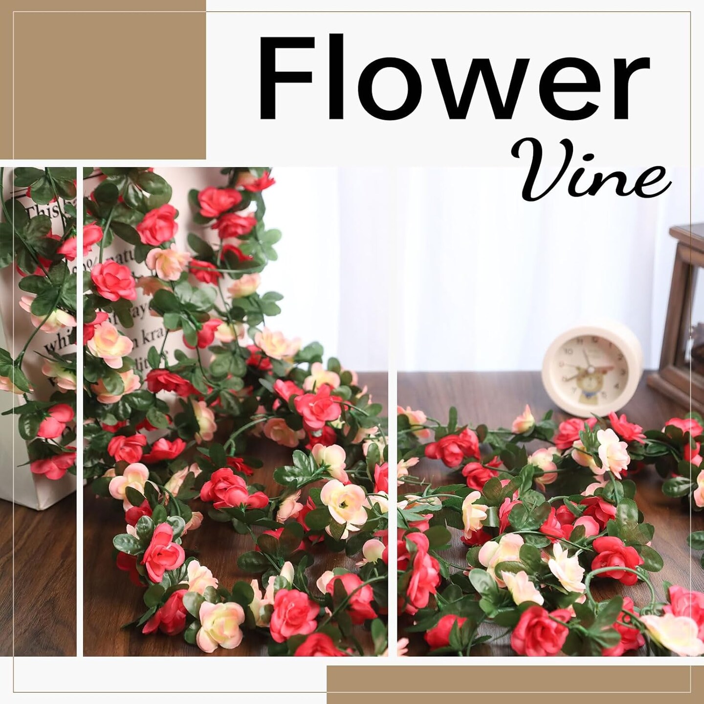 5PCS 41FT Pink Flower Garland – Artificial Rose Vines for Wedding, Flower Wall, Backdrop, Mother’s Day, Garden & Tea Party Decorations