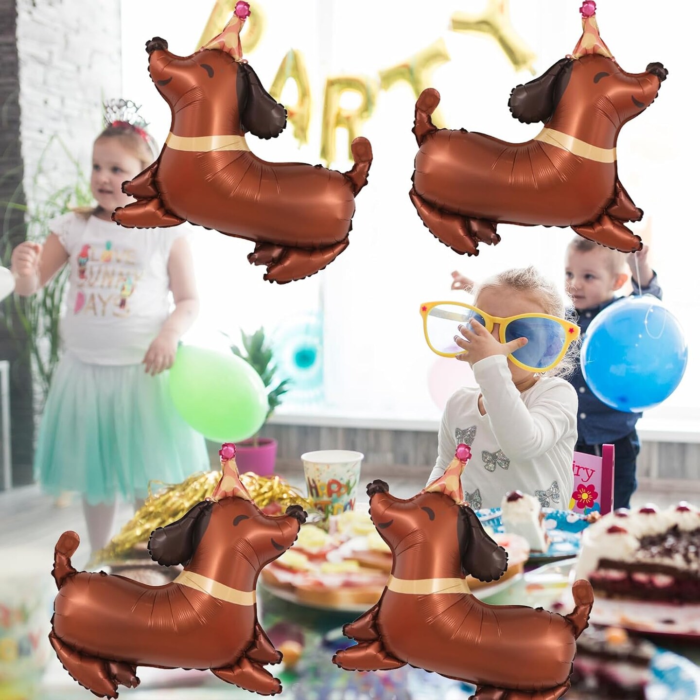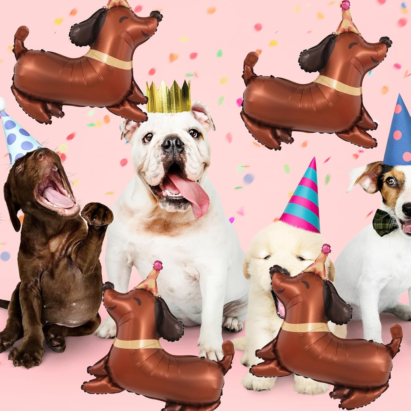 5Pcs Dachshund Dog Birthday Balloons – Puppy-Shaped Foil Mylar Balloons for Pet, Puppy, Dog, and “Let’s Pawty” Themed Party Decorations (Dachshund Shaped)