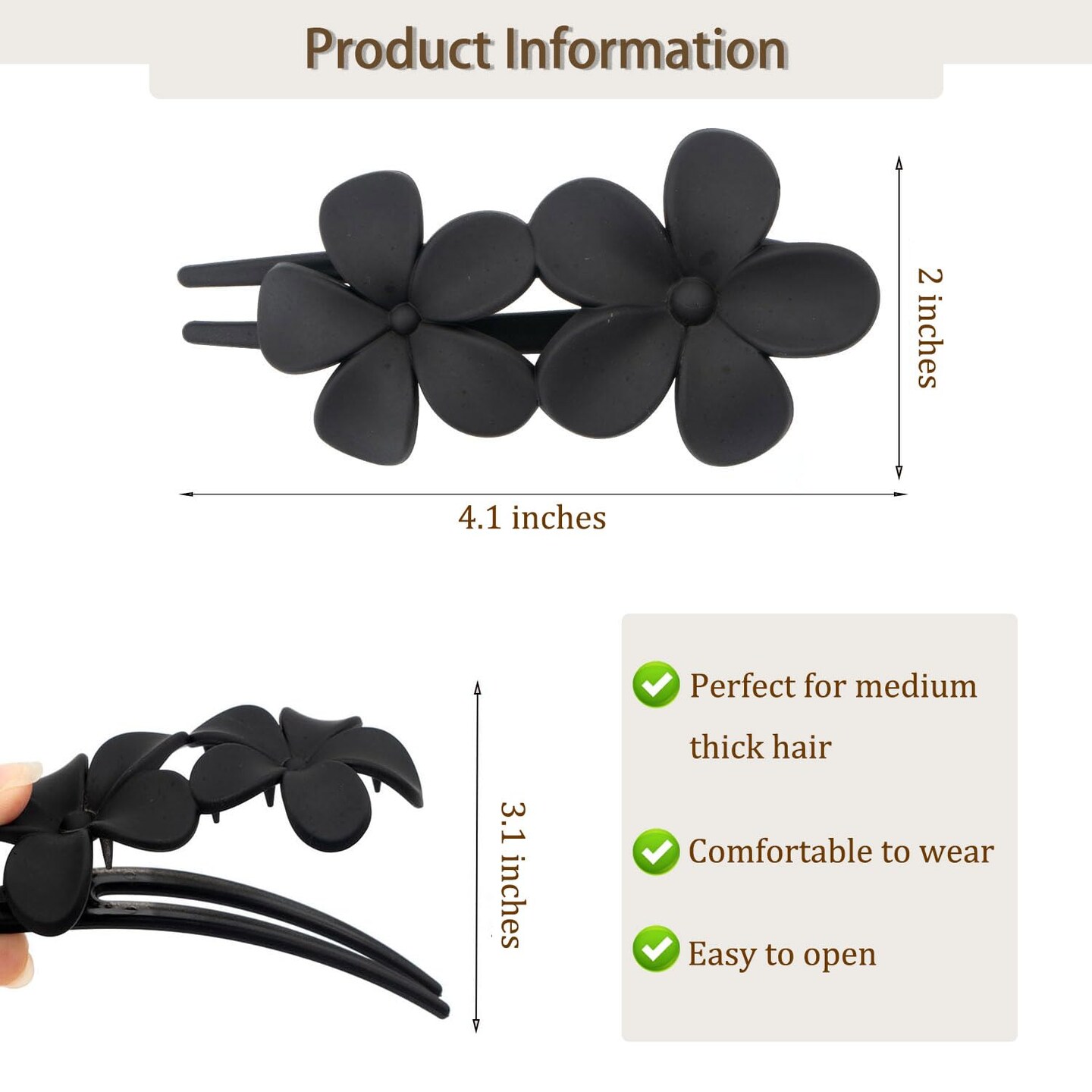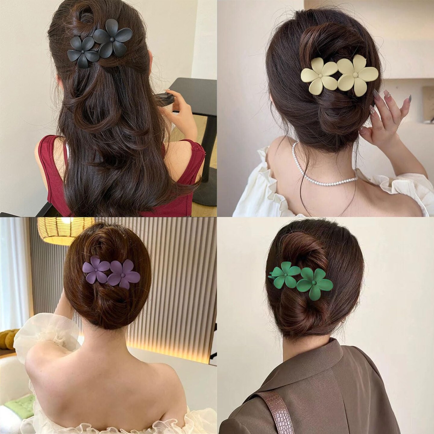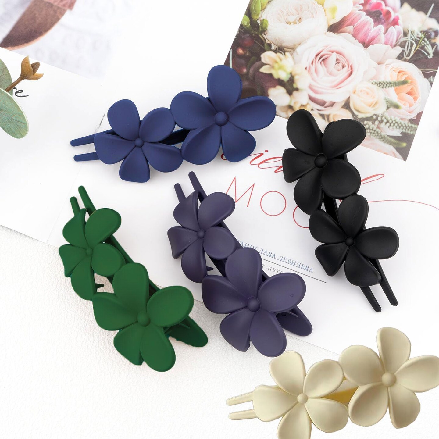 5Pcs Flower Flat Hair Clips (White, Green, Black, Purple, Blue)
