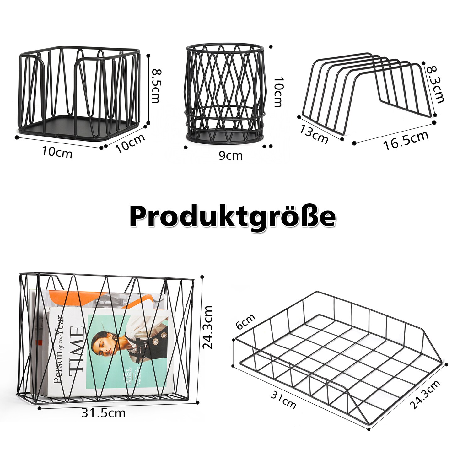 5PCS Office Desk Accessories Set Pencil Cup Holder Letter Sorter File Organizer