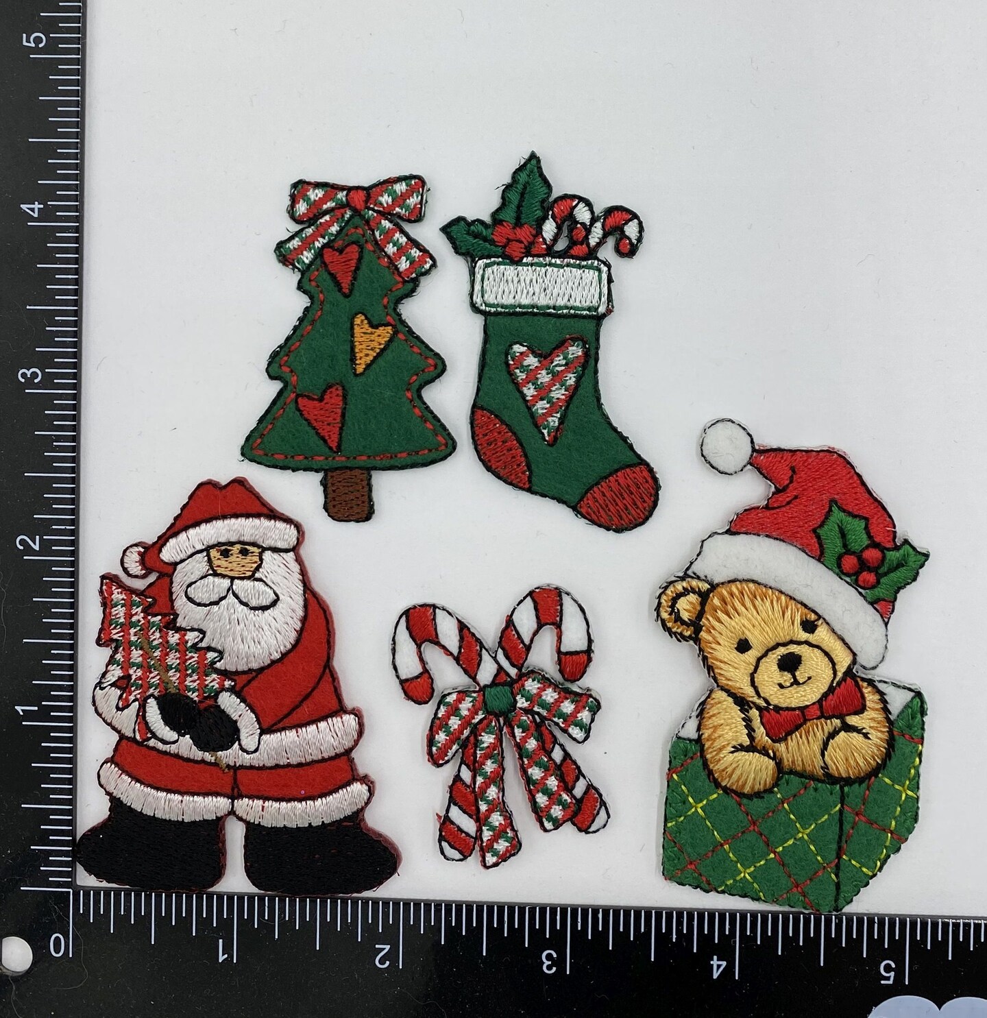 5-Piece Christmas Iron-On Patch Bundle – Santa, Tree, Stocking & Holiday Appliqués