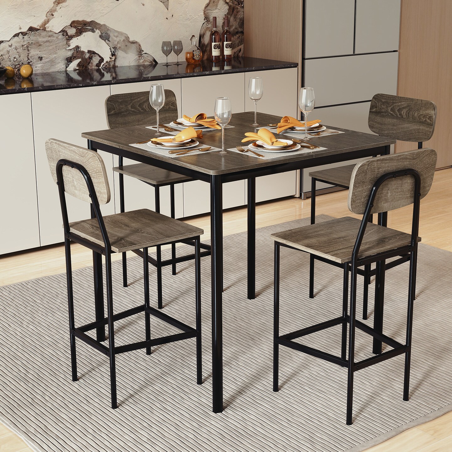5-Piece Dining Set with Counter Height Table and Bar Stools for Modern Living Rooms