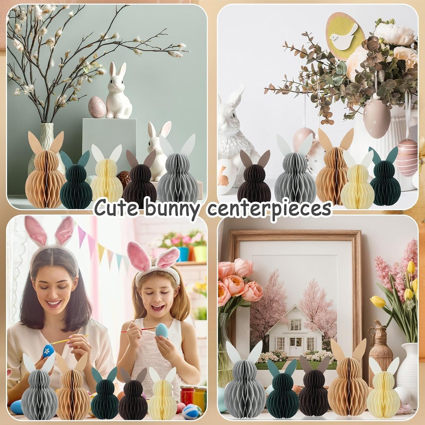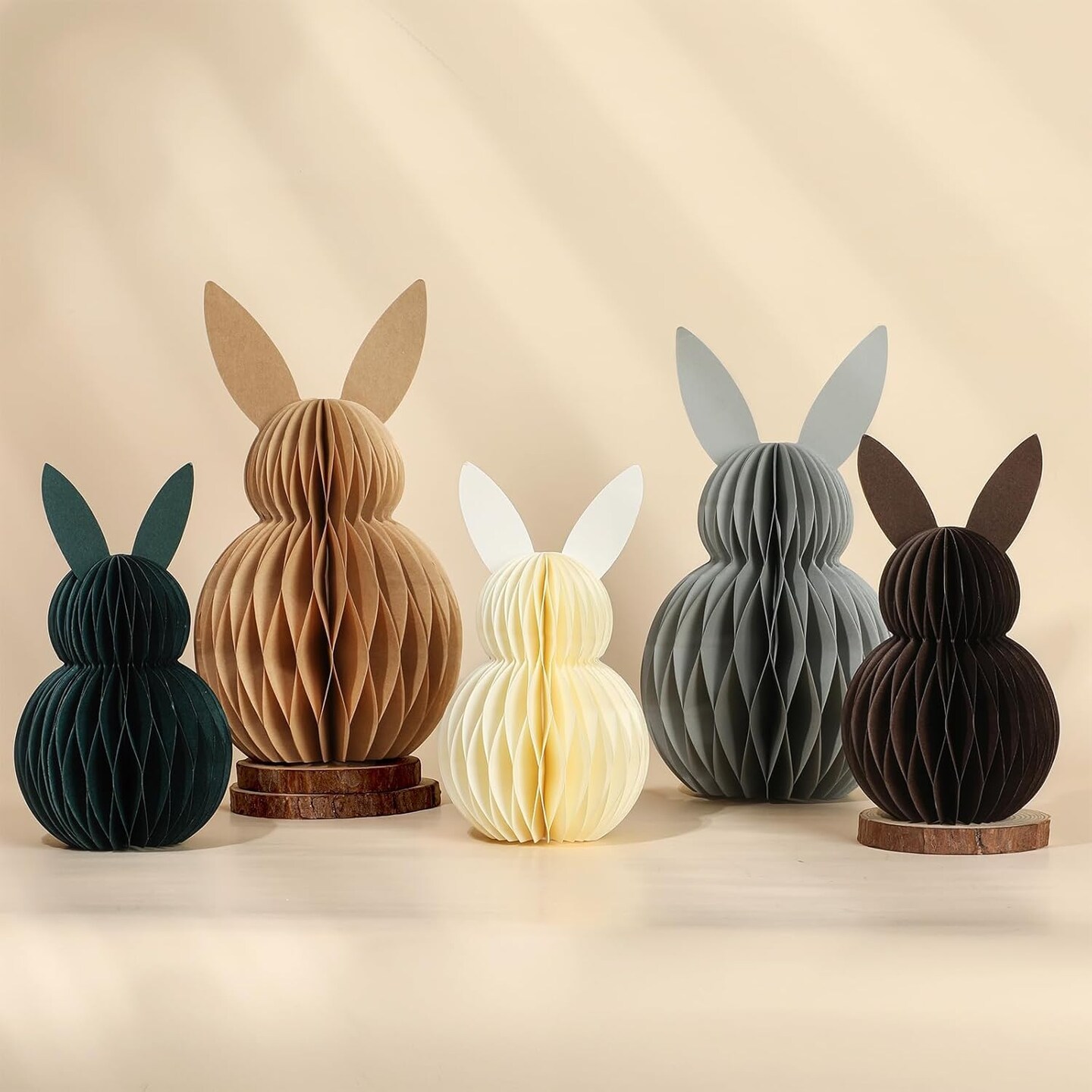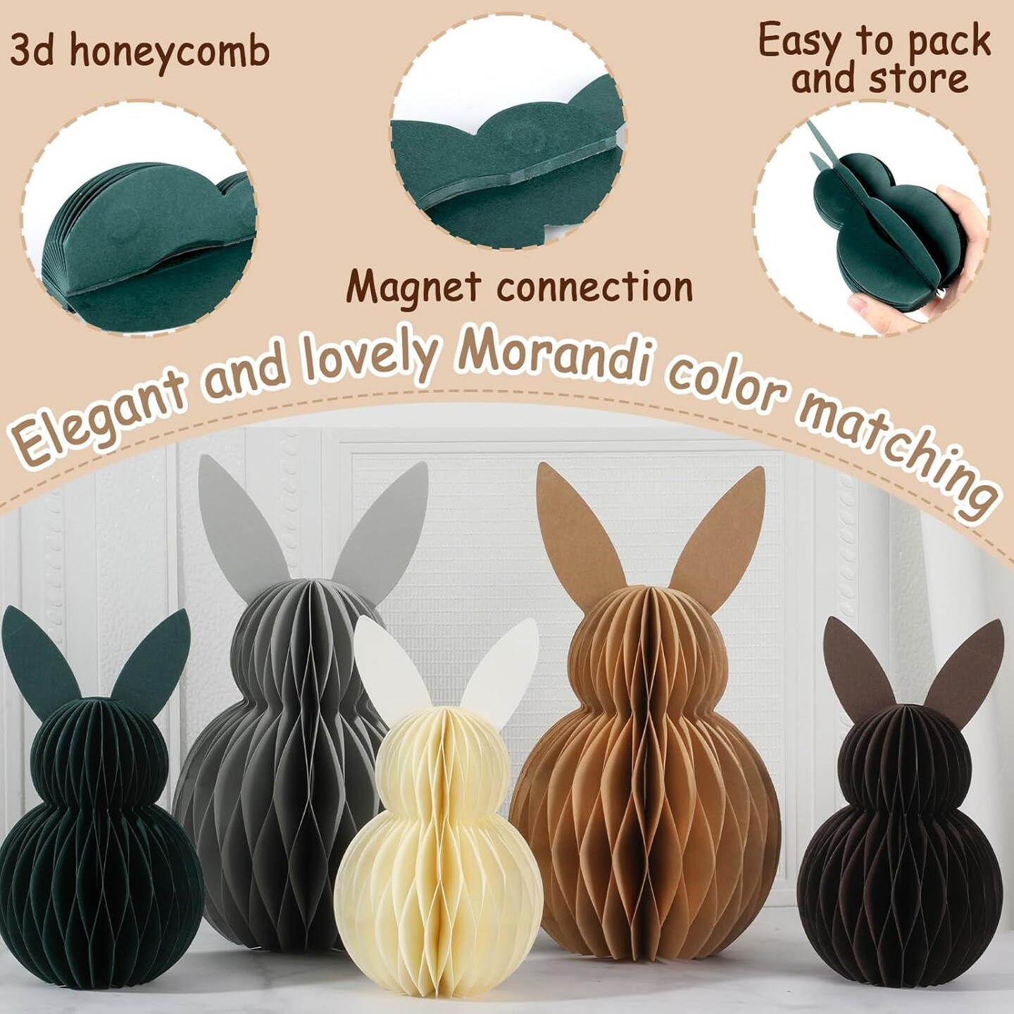 5-Piece Easter Bunny Honeycomb Centerpiece Set – 3D Paper Rabbit Table Decorations with Magnet, Neutral Boho Easter Party & Holiday Table Supplies for Home, Office, and Kitchen