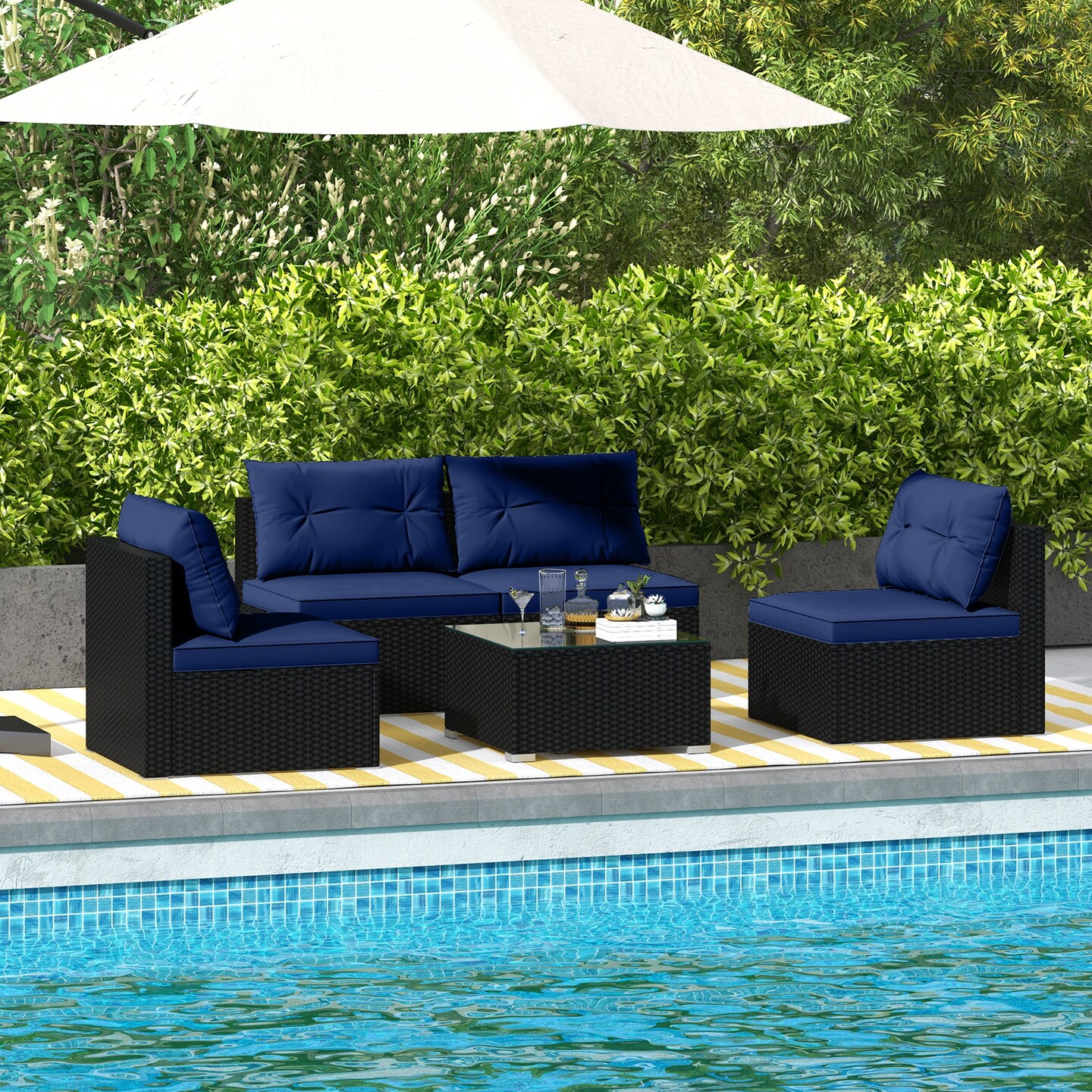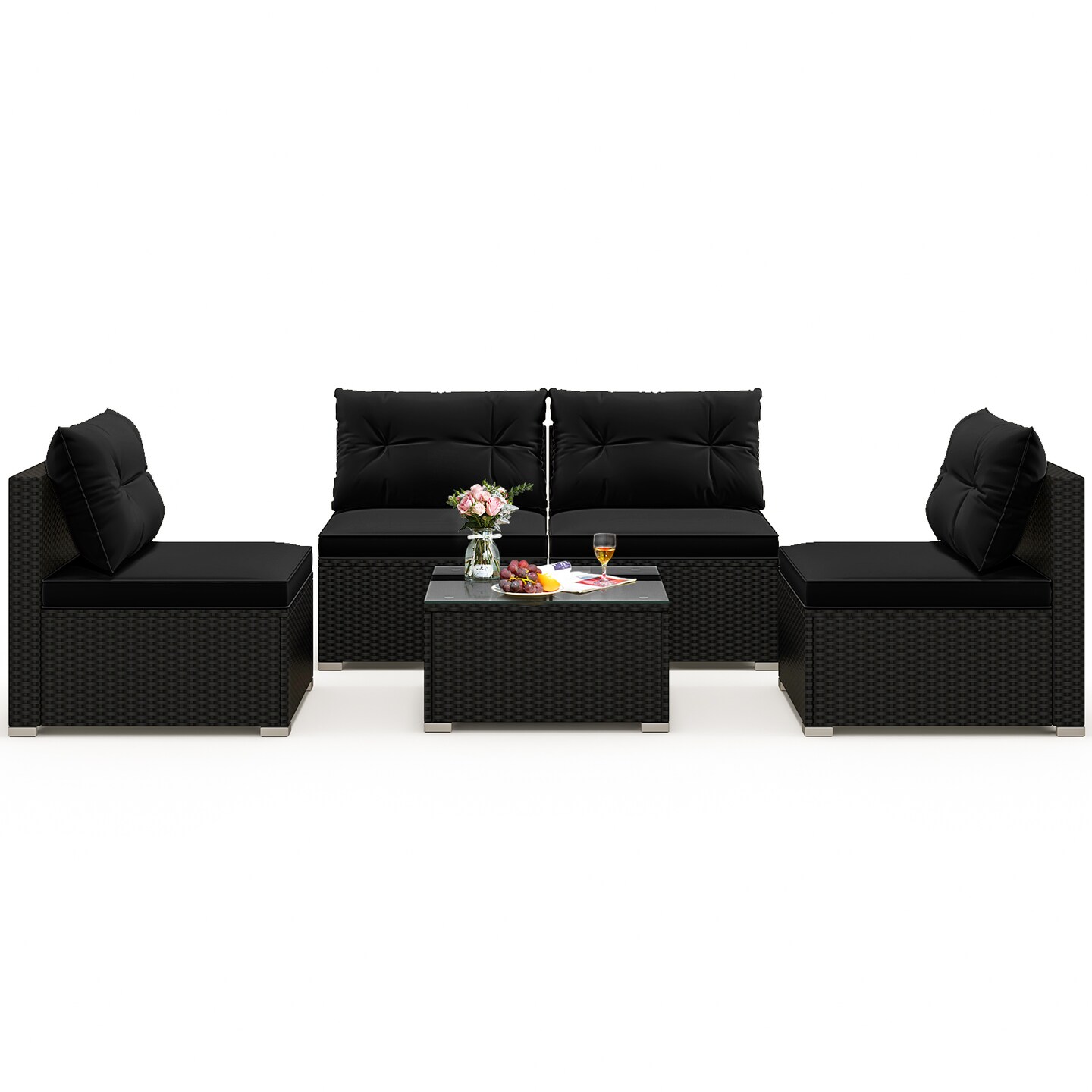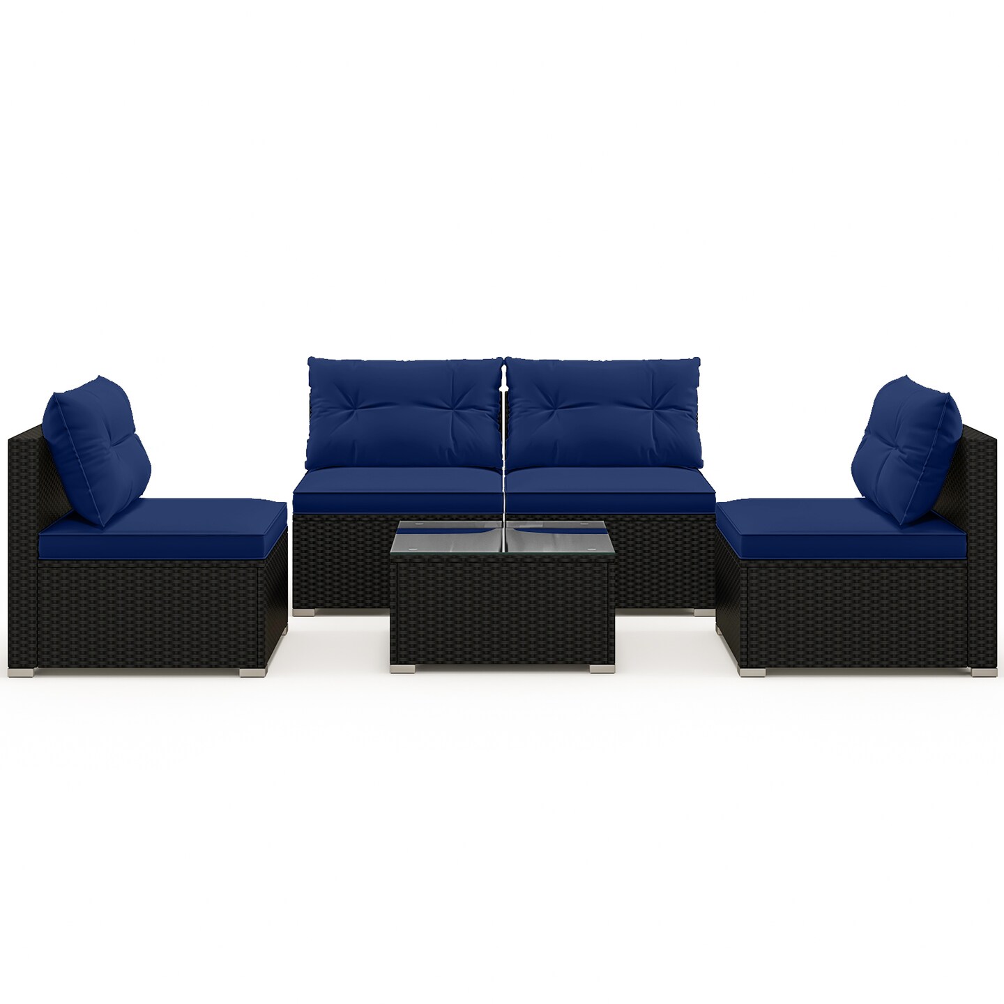 5-Piece Outdoor Patio Furniture Set with Cushions and Coffee Table and Rustproof Steel Frame