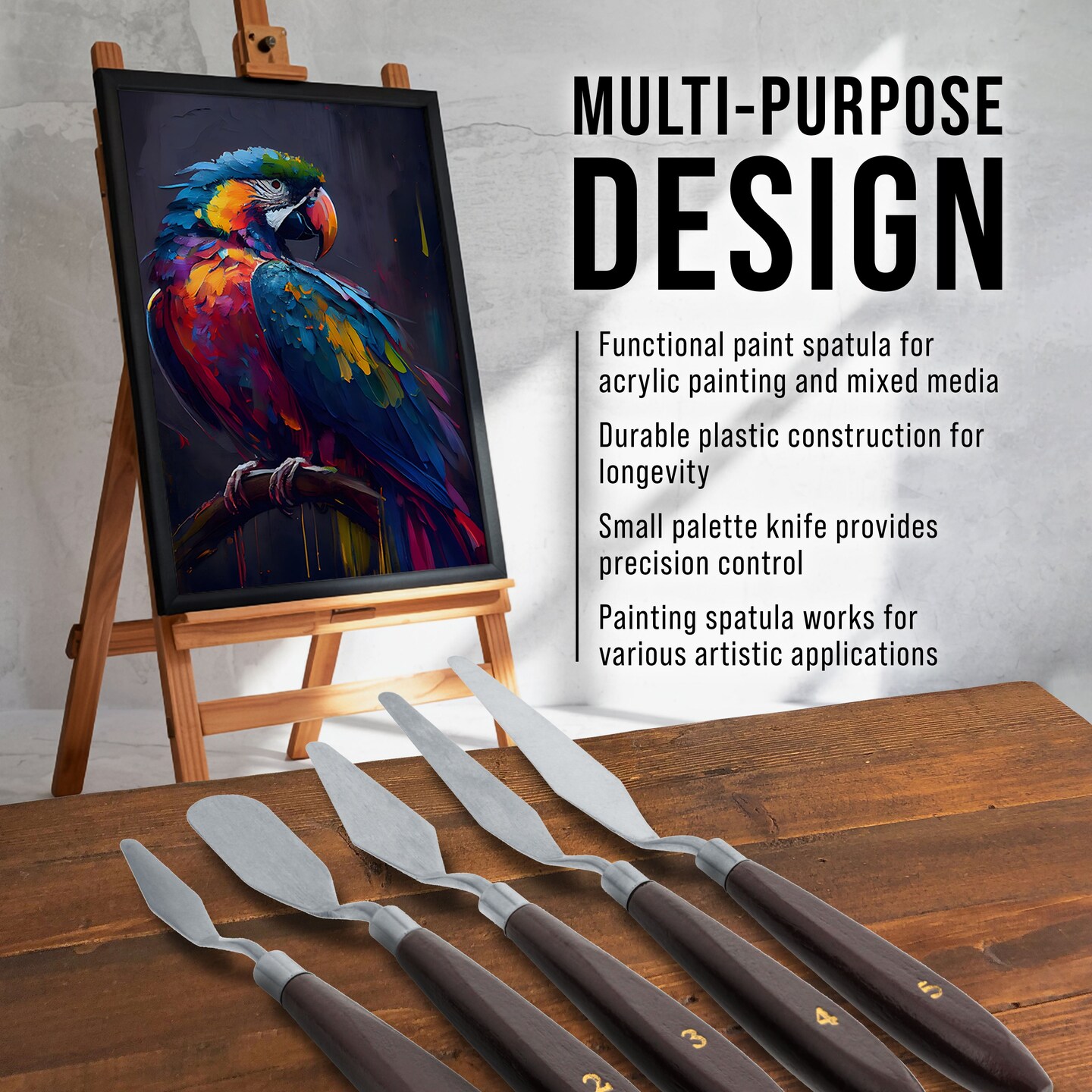 5-Piece Stainless Steel Palette Knife Set for Acrylic Painting - Paint Spatula Tools for Oil, Canvas Art - Painting Knives for Mixing, Texturing - Pallet Knives for Art & Cake