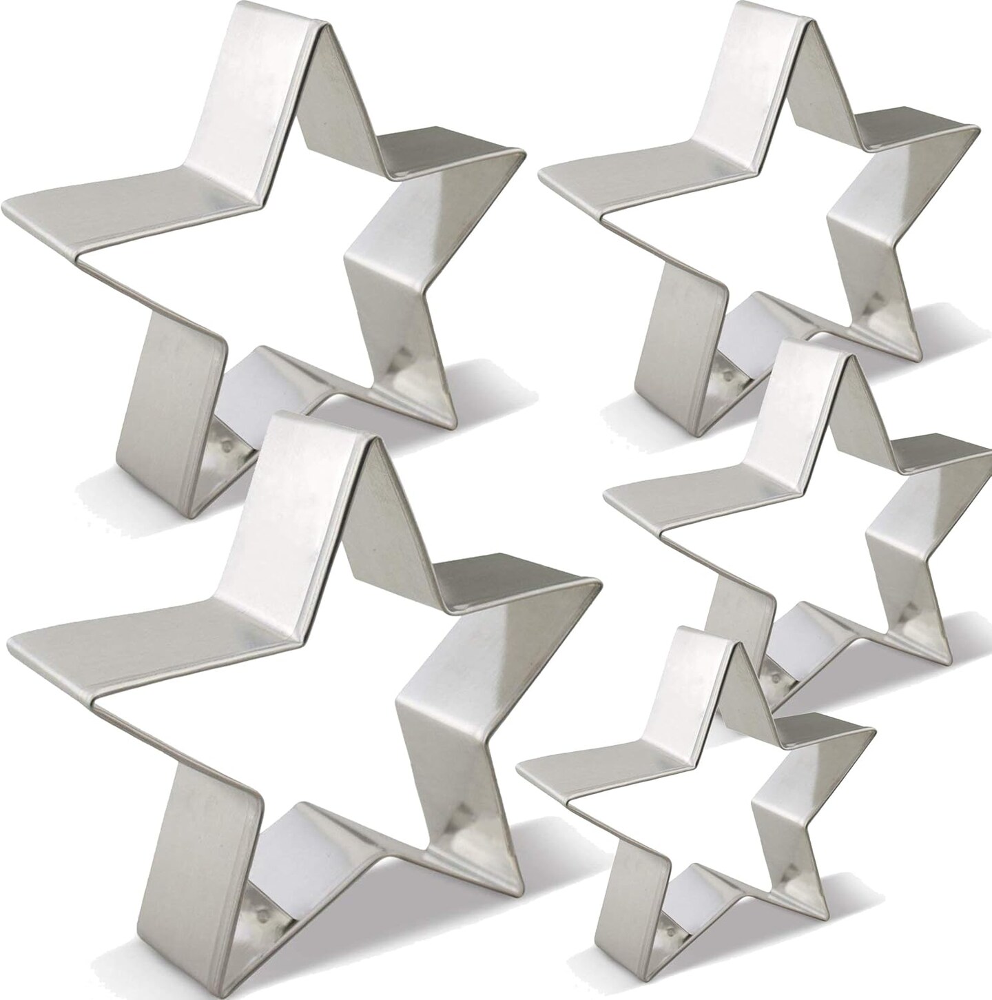 5-Piece Stainless Steel Star Cookie Cutter Set – Five-Pointed Biscuit, Fondant, and Pastry Molds for 3D Christmas Trees, Linzer Cookies, and Cake Decorating