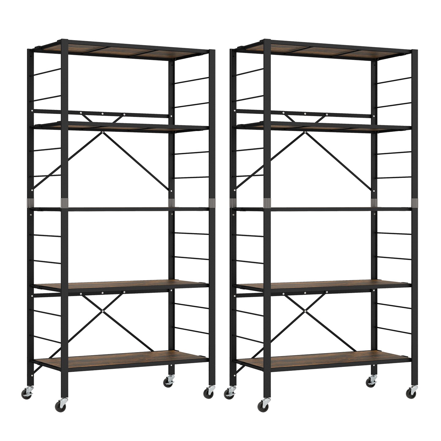 5-Tier Foldable Shelving Unit with Detachable Wheels and Anti-Toppling System-Black