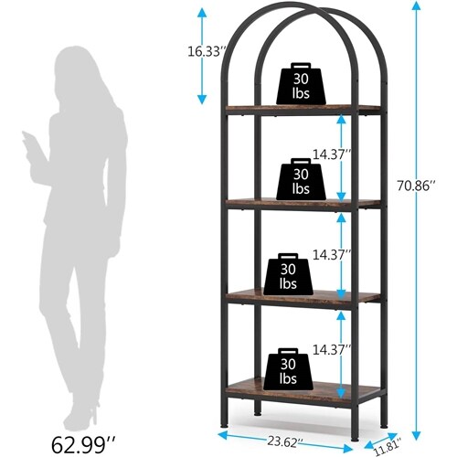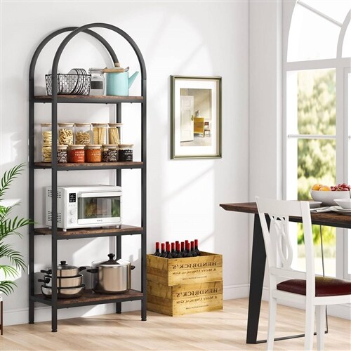 5-Tier Rustic Brown Wood and Metal Display Shelf Versatile Storage for Living Room and Office