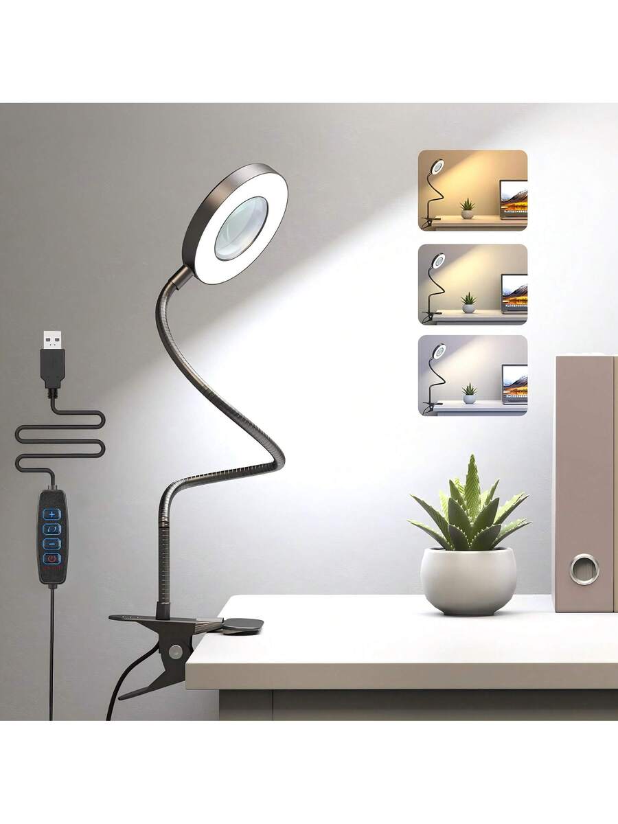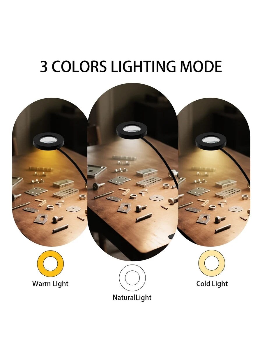 5X Magnifying Glass With Light, 3 Colors & 10 Brightness Reading Lamp