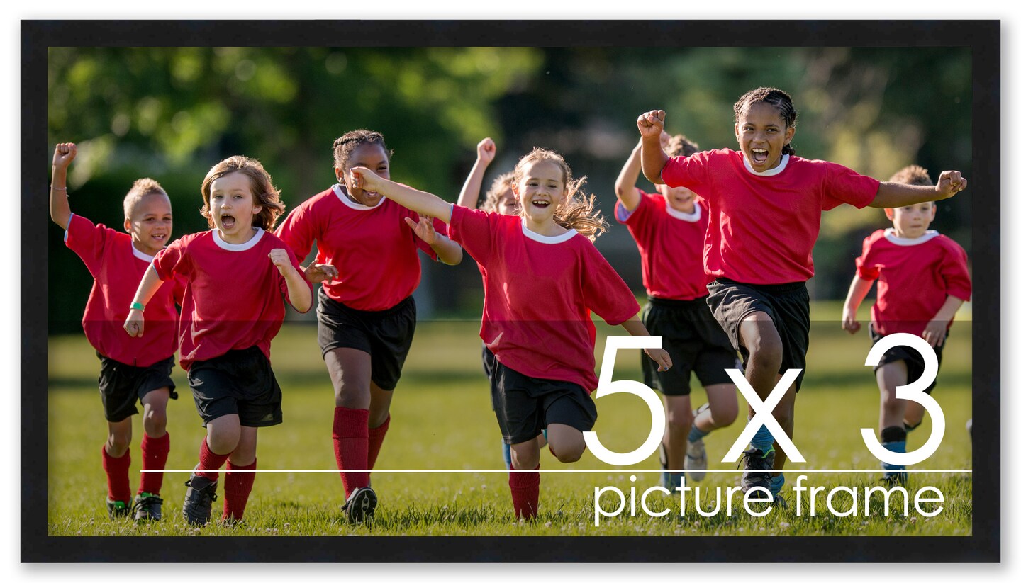 5x3 Simple Black Picture Frame - UV Acrylic, Foam Board Backing, Hanging Hardware