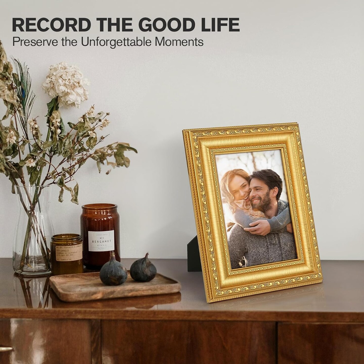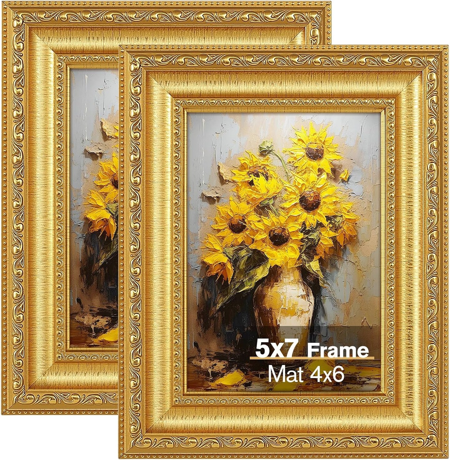 5x7 Gold Picture Frames Set of 2, Ornate Vintage 5 x 7 Photo Frames for Wall Decor(gloden)5"L x 7"W