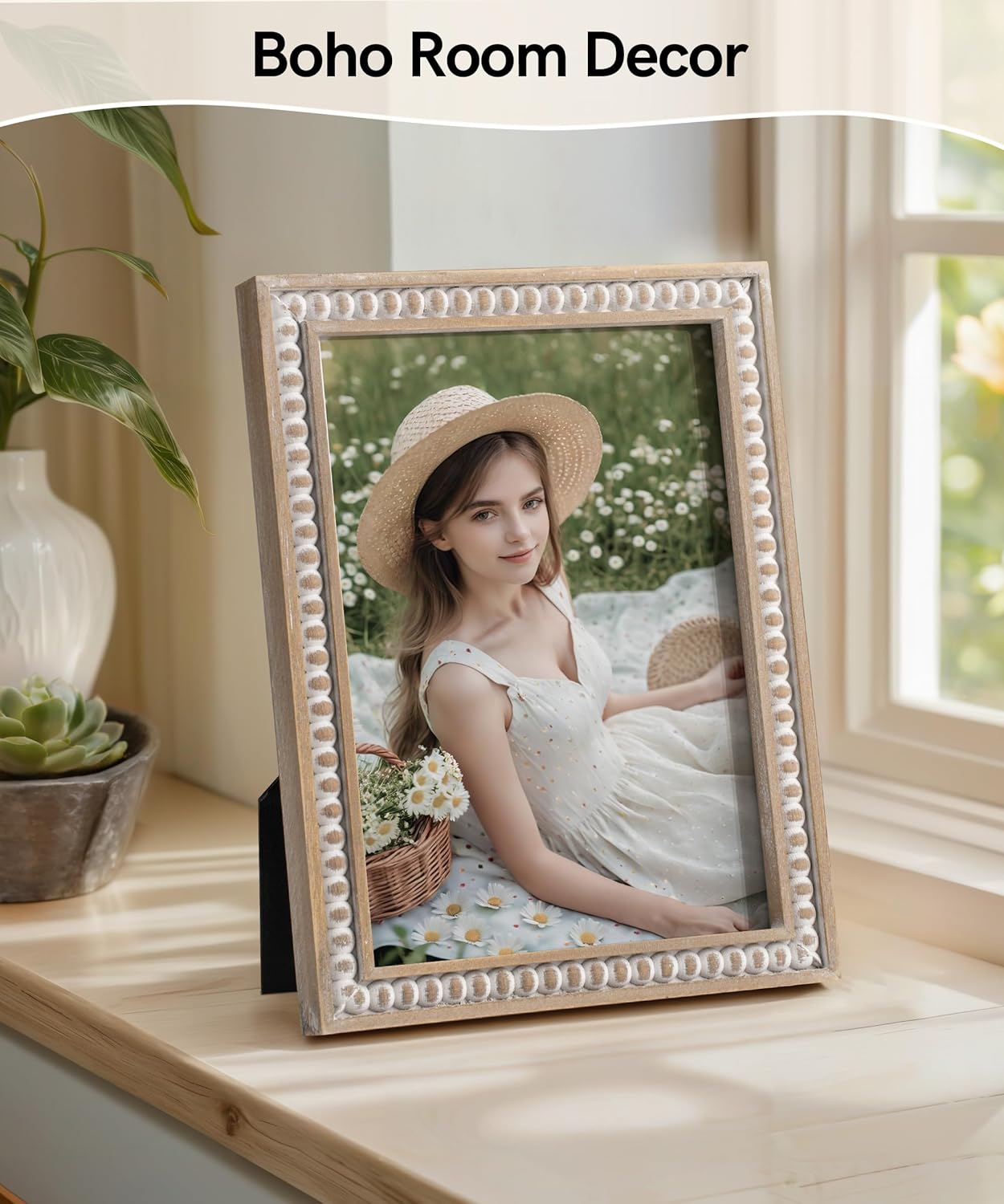 5x7 Picture Frame, Natural Pine Wood Wall Mount Photo Frame(Distressed White)7"L x 5"W