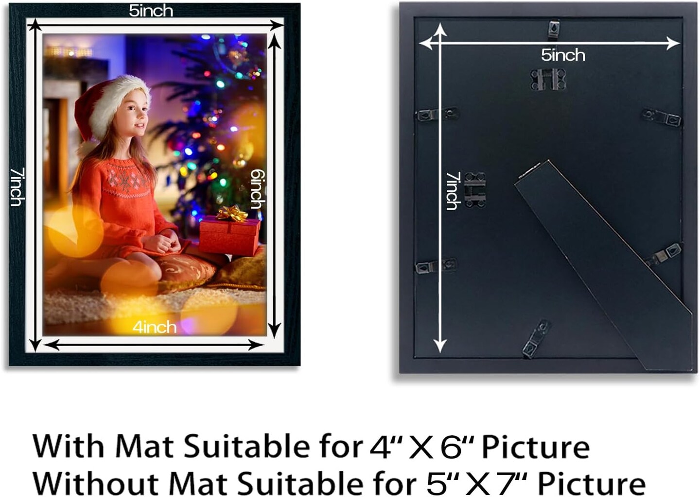 5x7 Picture Frame Set of 3 Black,Made of Solid Wood 4x6 with Mat(Black)5"L x 7"W
