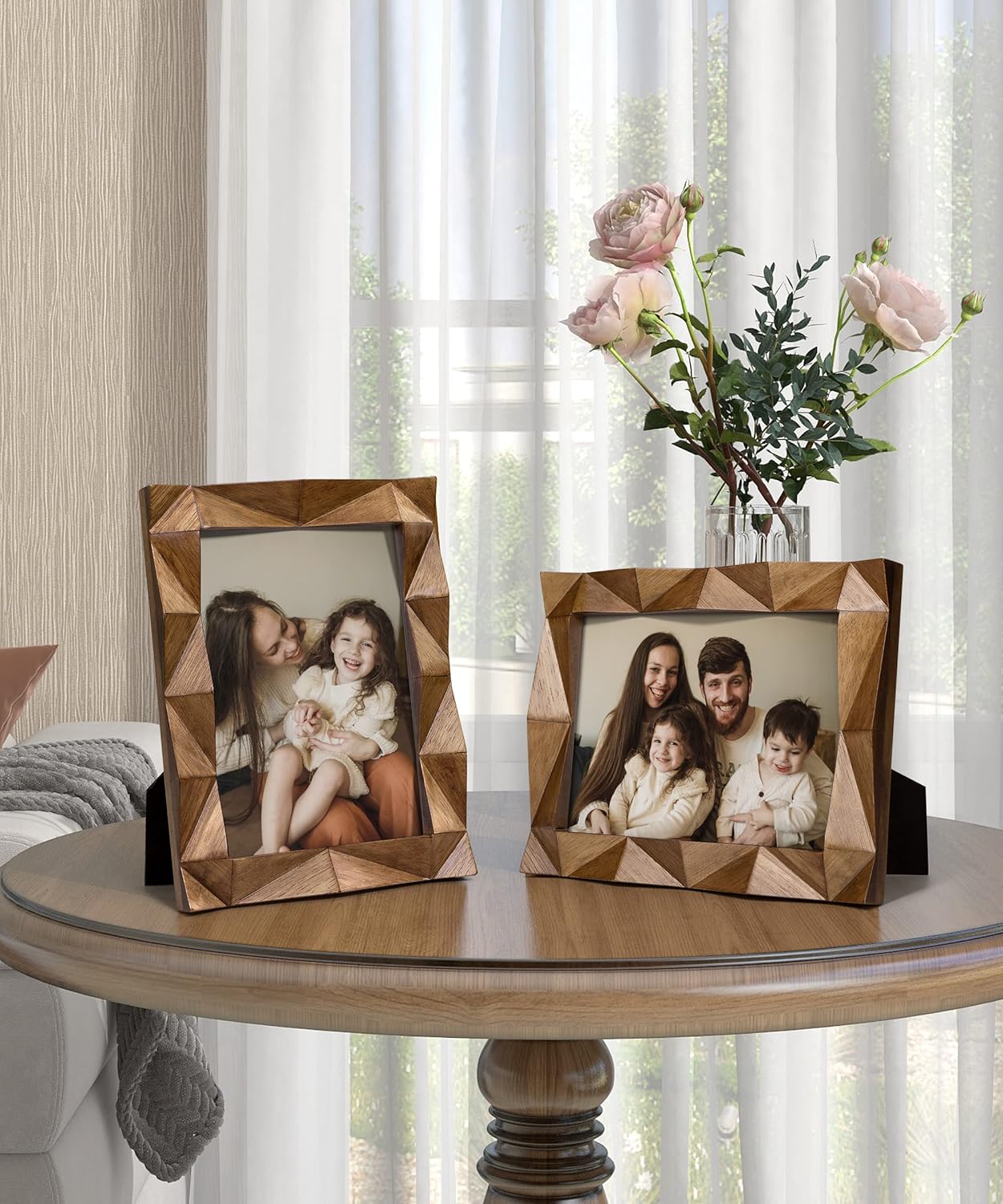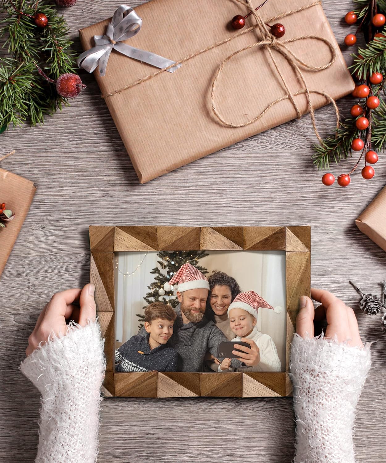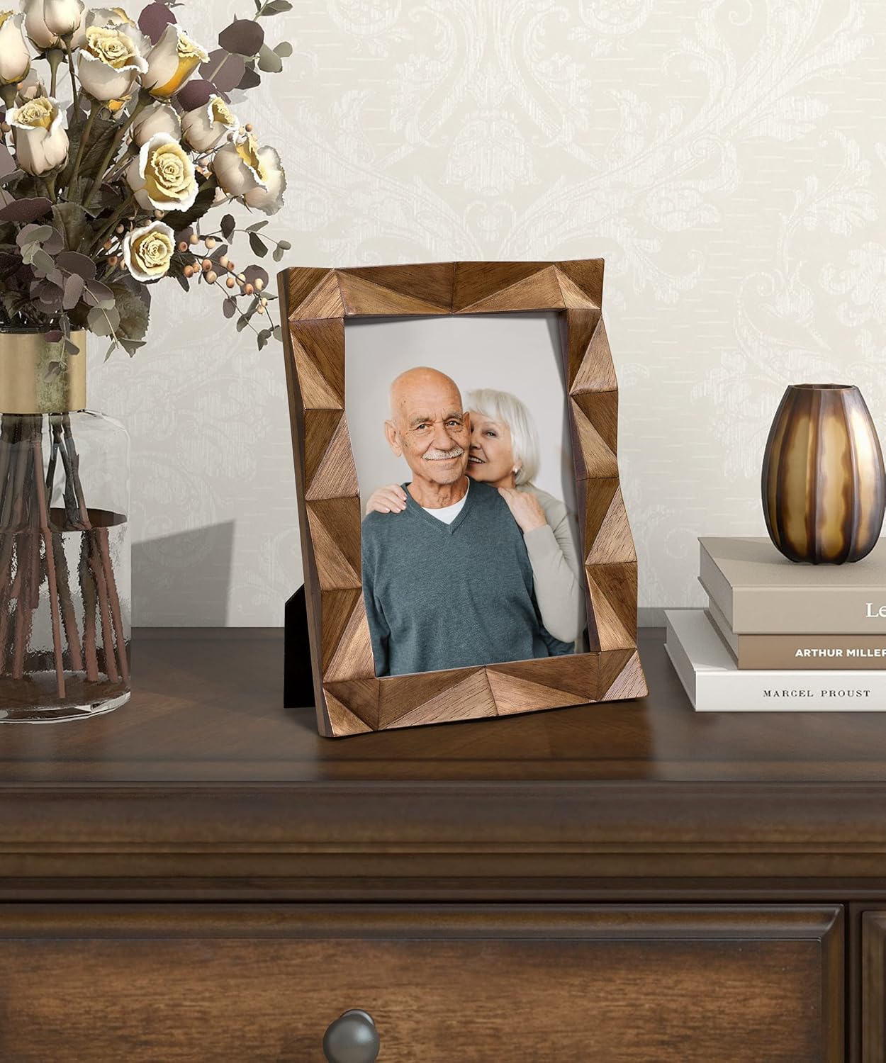 5x7 Picture Frame, Wooden Farmhouse Photo Frame Handmade Carved Design with Rustic Walnut-colored Finish, Mothers Day Gifts, Gifts for Mom Dad Grandma Women Friends Family