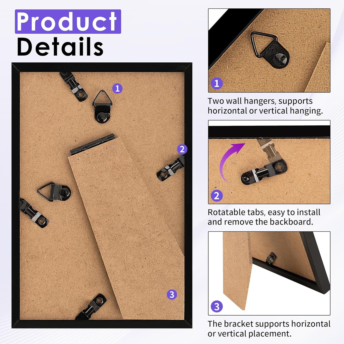 5x7 Picture Frames 2PK, Black Photo Frame with Shatterproof HD Plexiglass, Horizontal and Vertical for Wall Hanging or Tabletop