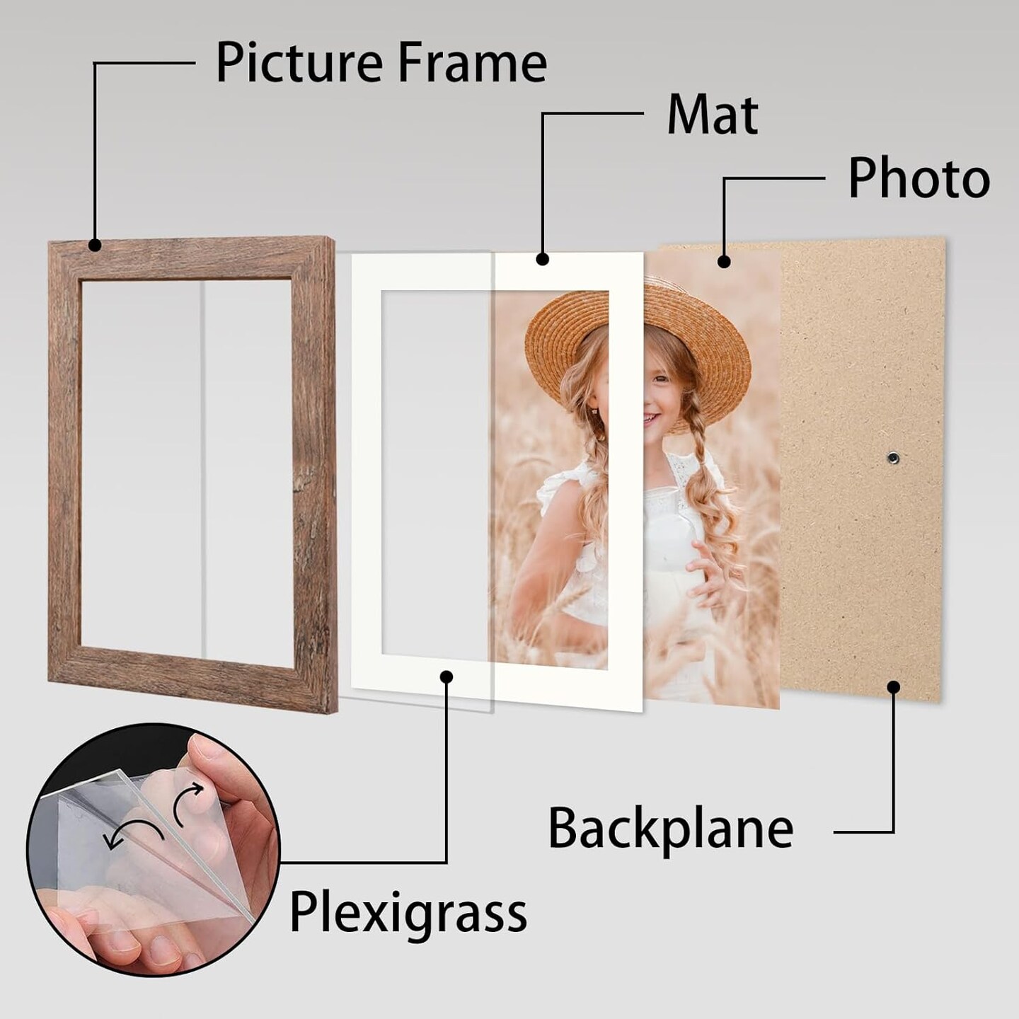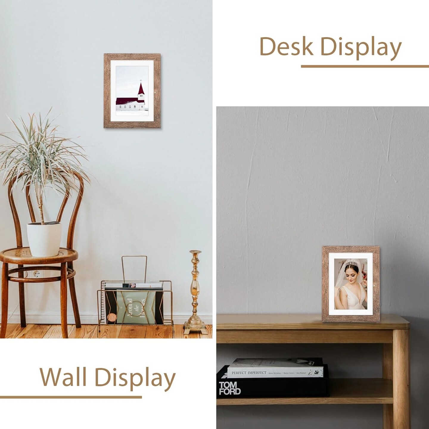 5x7 Square Picture Frame Display 5x7 Picture Distressed Brown Wood Grain Photo(Brown)6.3"L x 8.66"W