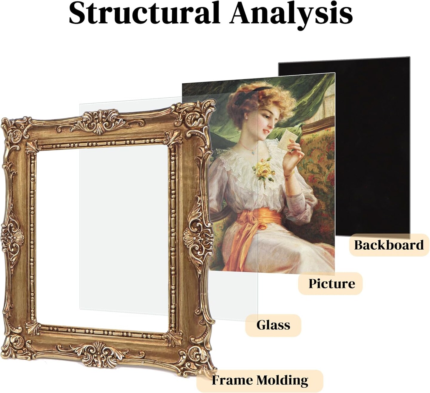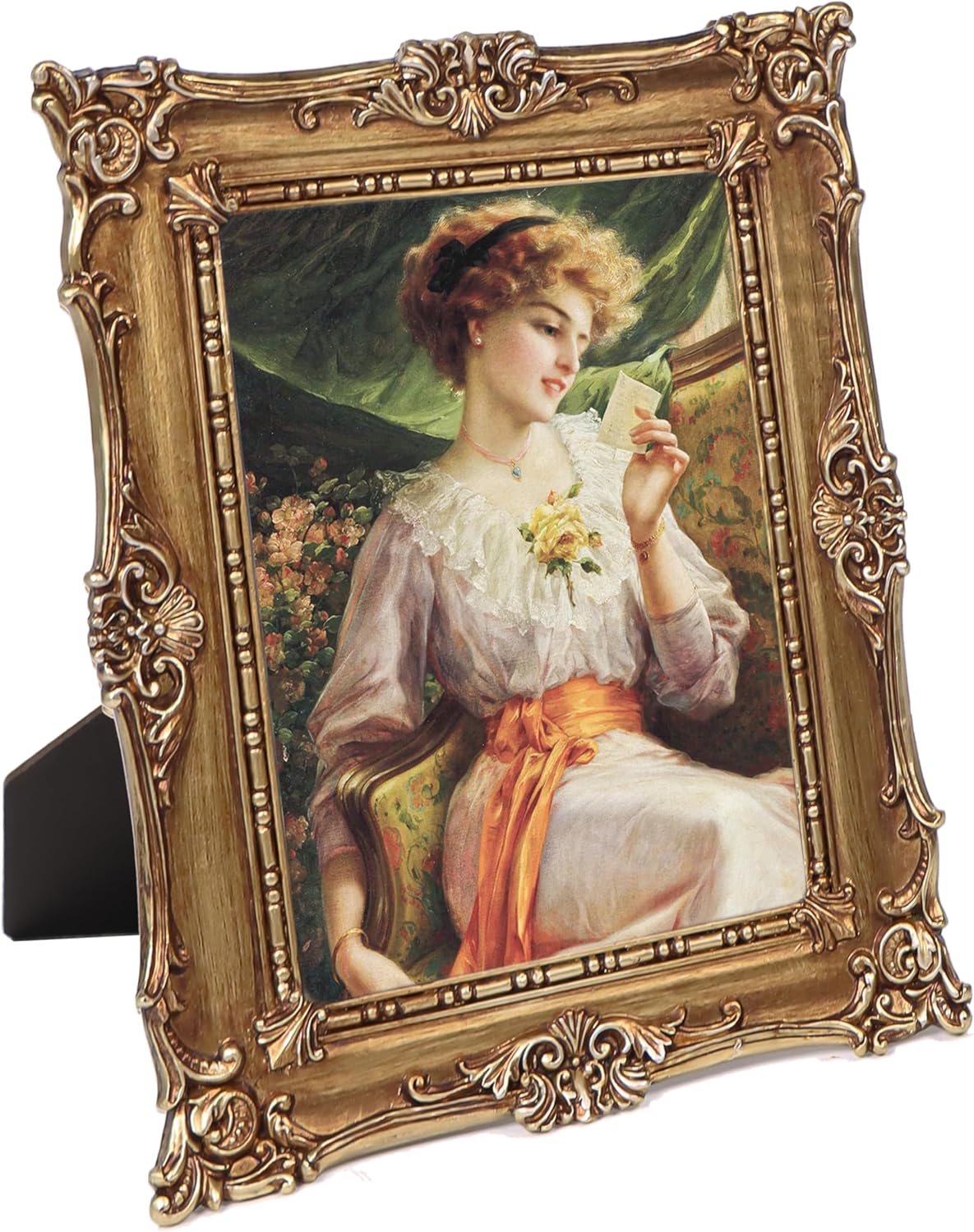 5x7 Vintage Photo Frames, Black Hand-Crafted Resin Photo Frame with Easel & Hook,(Gold)9.4"L x 7.5"W