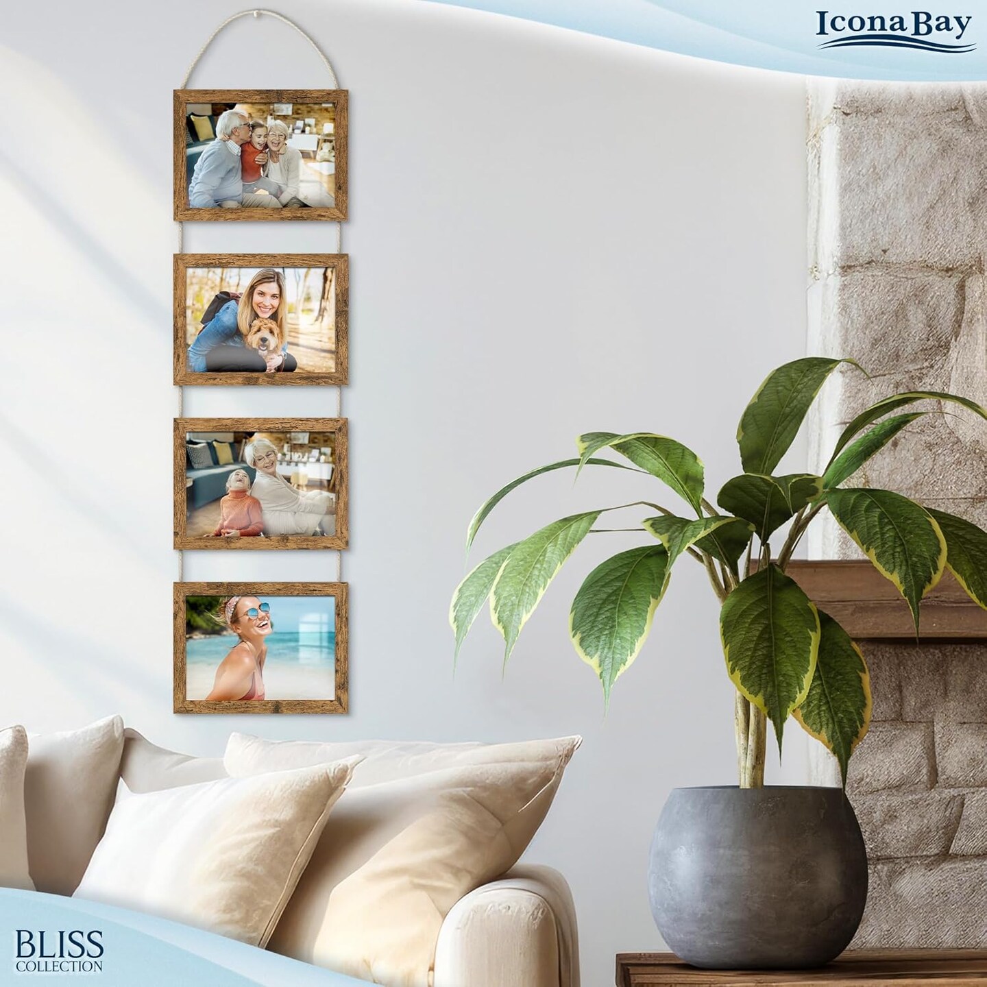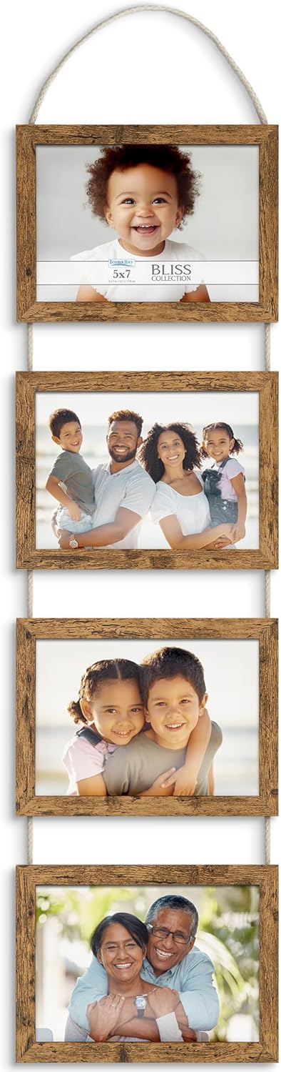 5x7 Wall Hanging Picture Frames Collage with 4 Openings(Rustic Brown)33.46"L x 7.8"W