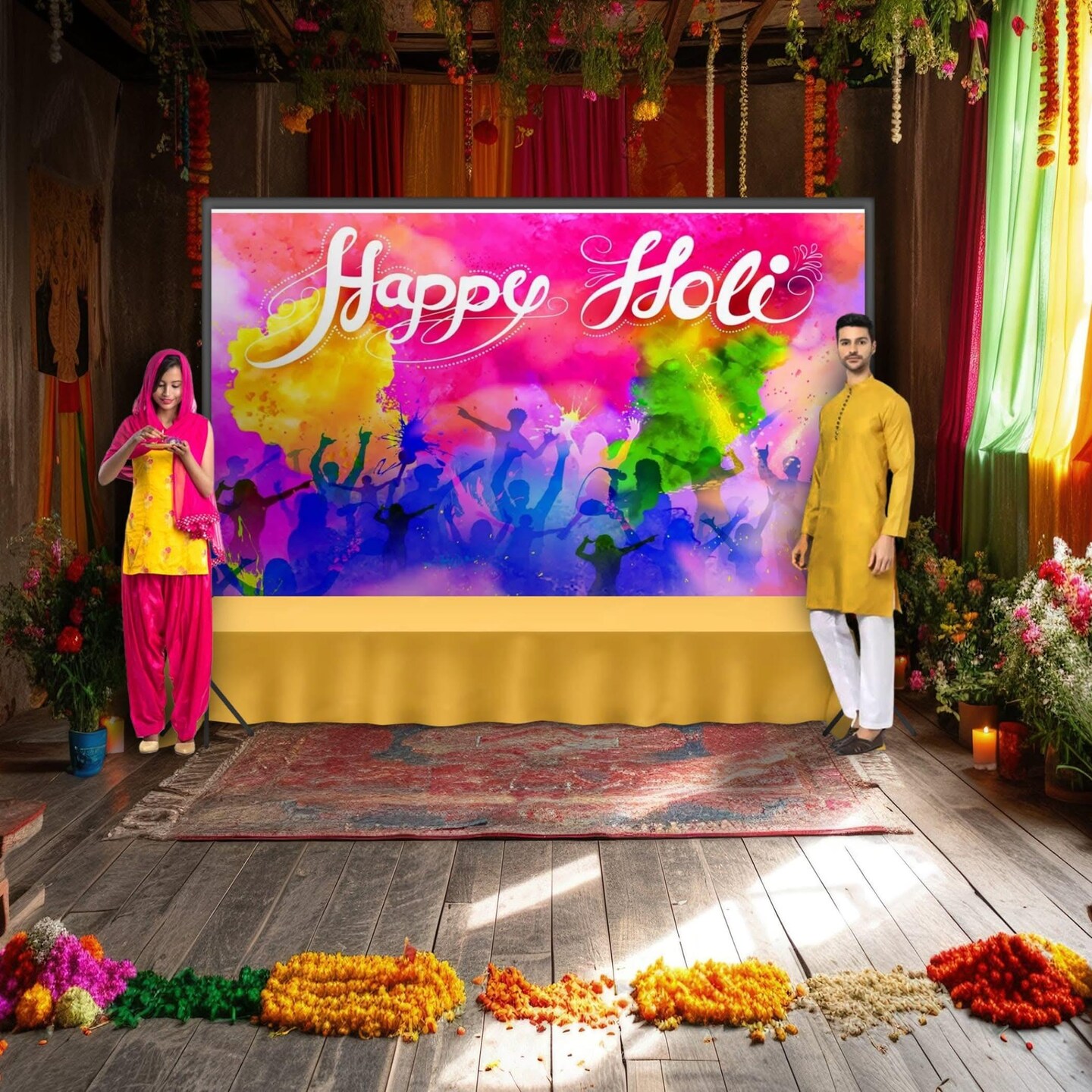 5x8 Ft Happy Holi Backdrop Cloth Banner Indian Hindu Colorful Holi Party Supplies Decorations Backdrop Indoor Outdoor Photography Home Wall Background Decoration