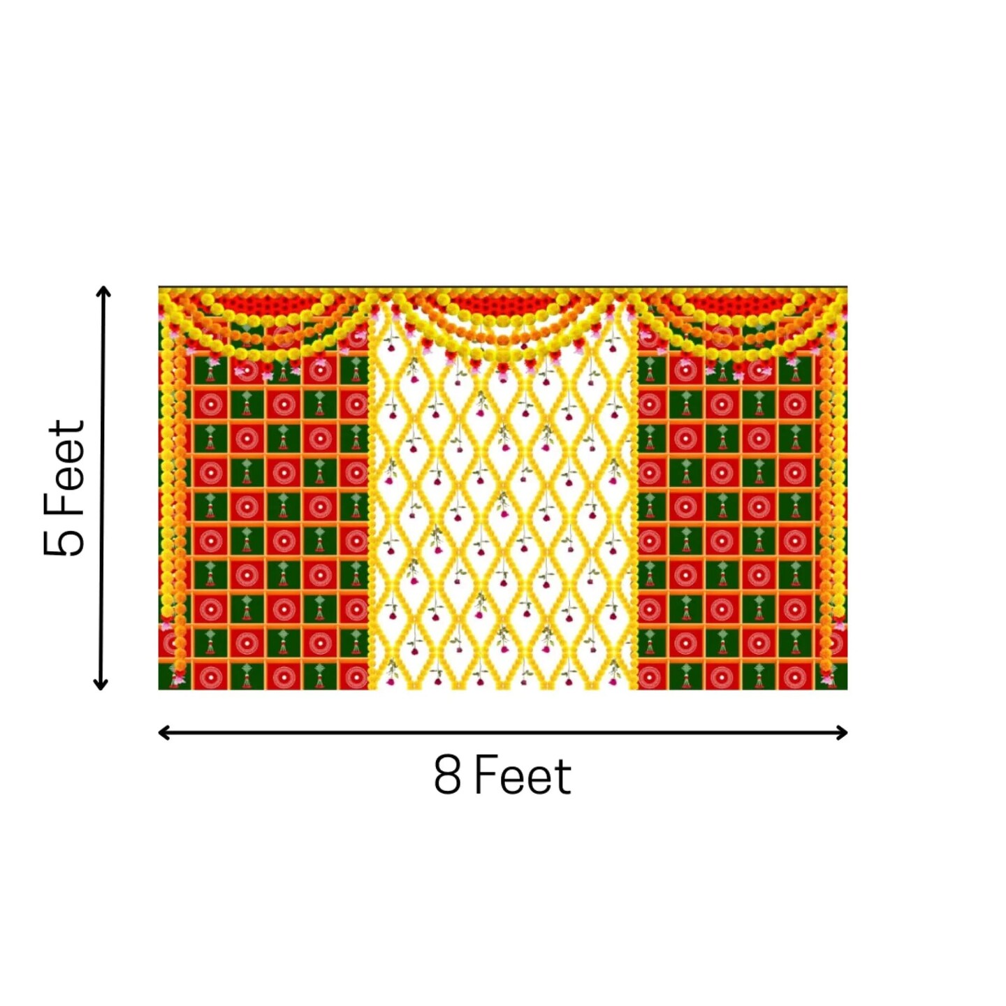 5x8 Ft Marigold Indian Wedding Cloth Backdrop Traditional Photography Pooja Backdrop Wall Art Photo Decor Banner Diwali Decor Hindu Wedding Marriage Bridal Shower Decorations Photoshoot