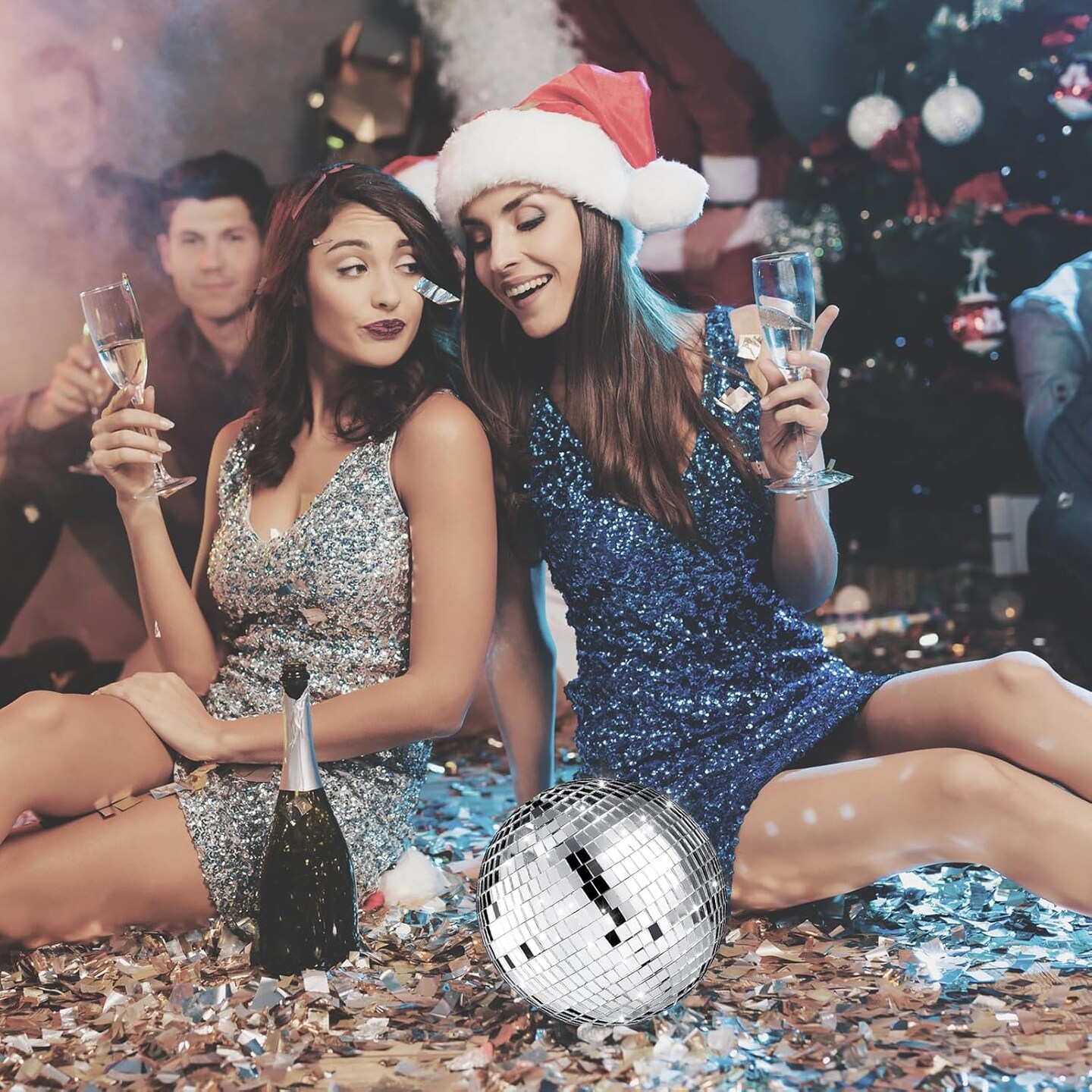 6'' Disco Ball Christmas Tree Topper Disco Mirror Ball Xmas Tree Topper 3D Hollow Silver Disco Ball Decor Disco Ball Ornament for 70s Disco Holiday Wedding Birthday Party Decorations