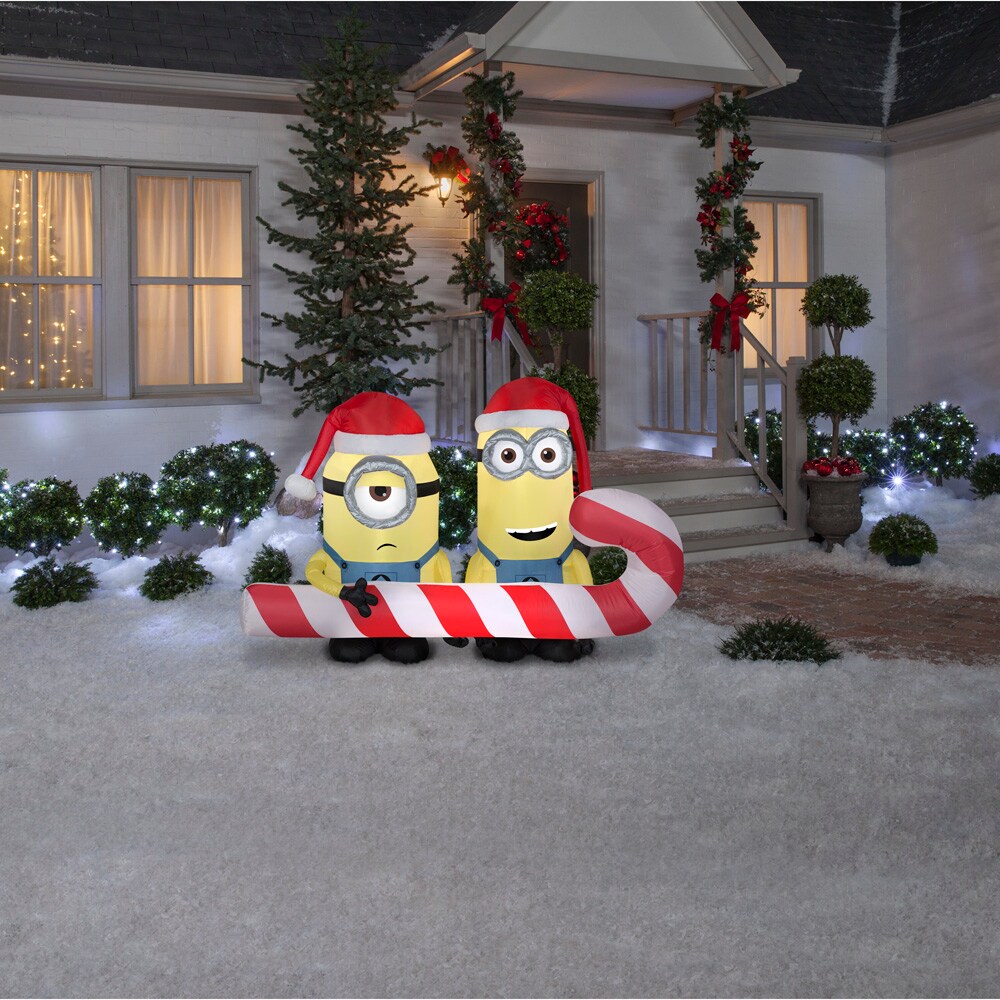 6' Gemmy Airblown Inflatable Minions Holding Candy Cane Scene Christmas Yard Decoration 114781