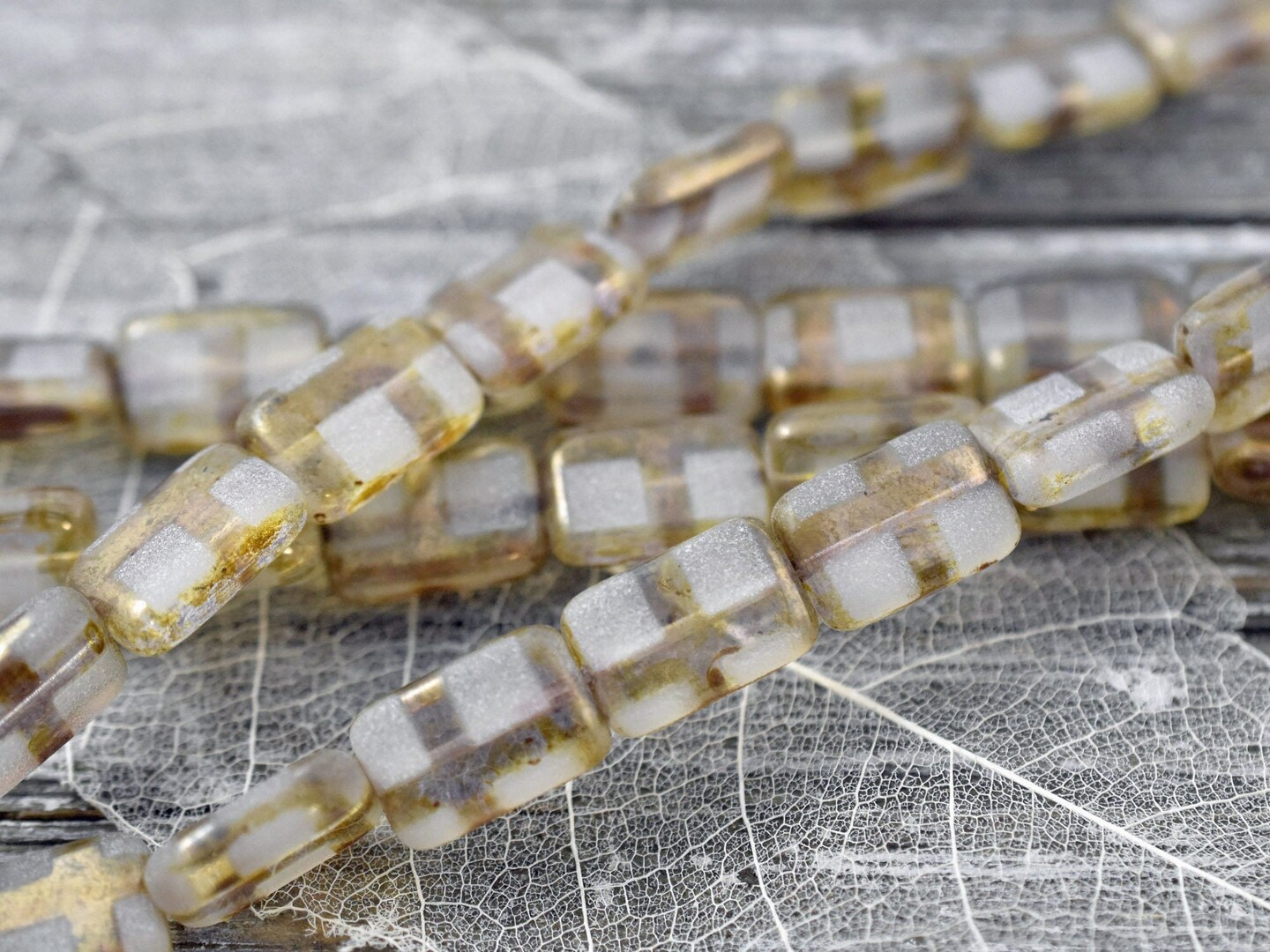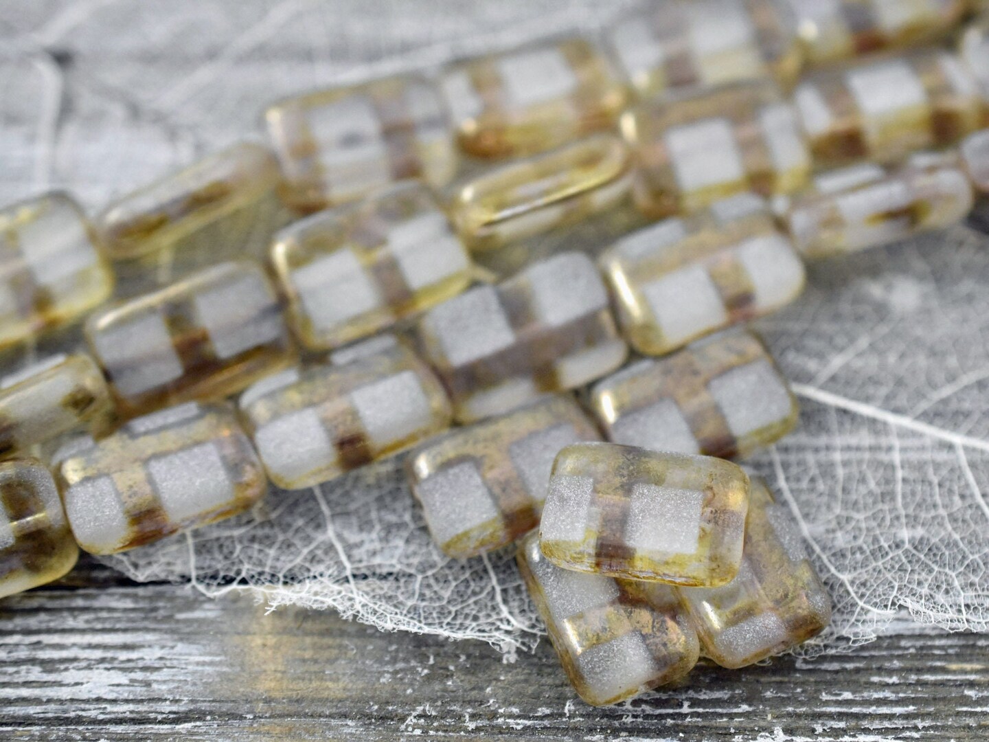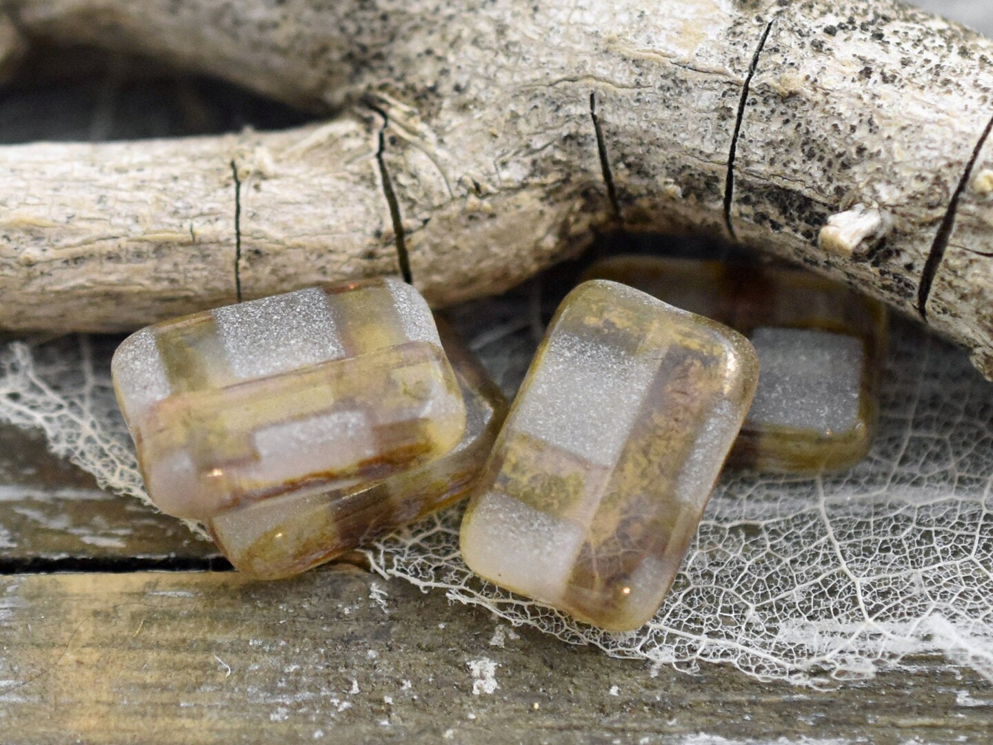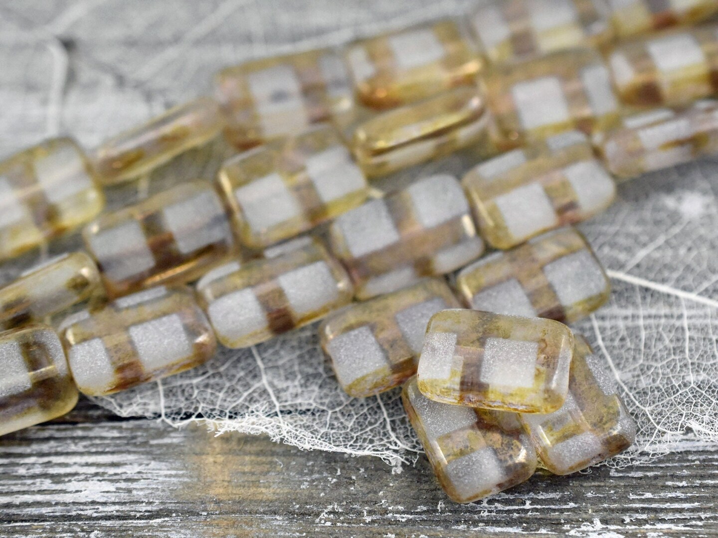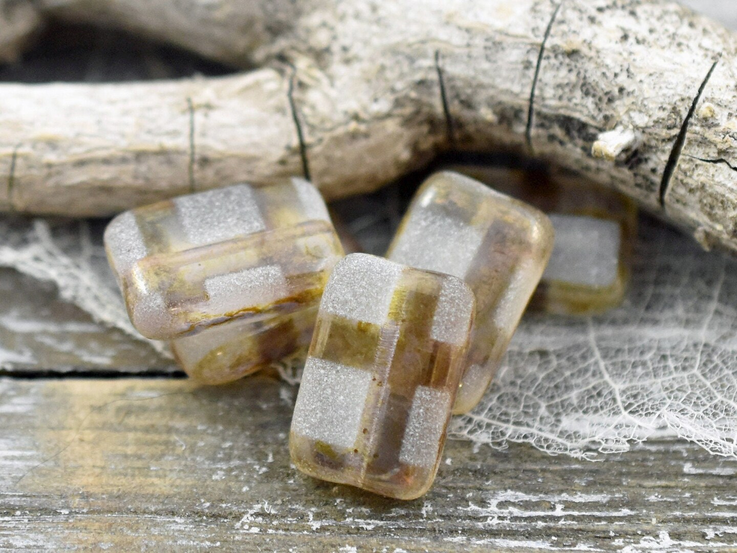 *6* 10x14mm Crystal Picasso Laser Etched Rectangle Beads