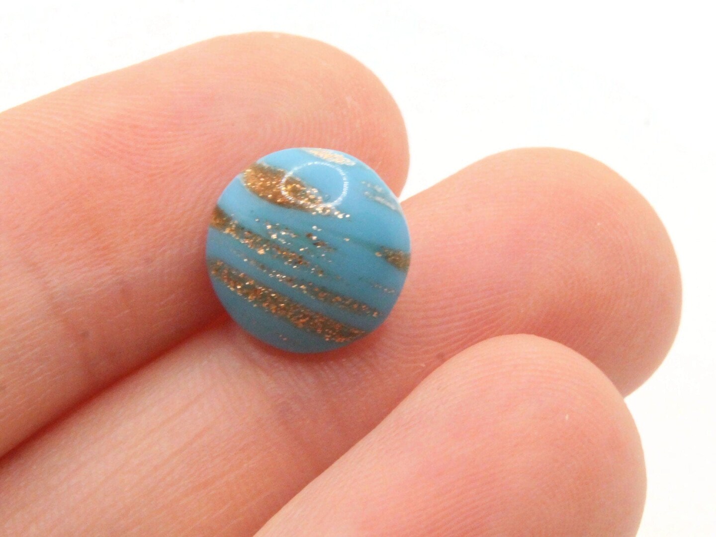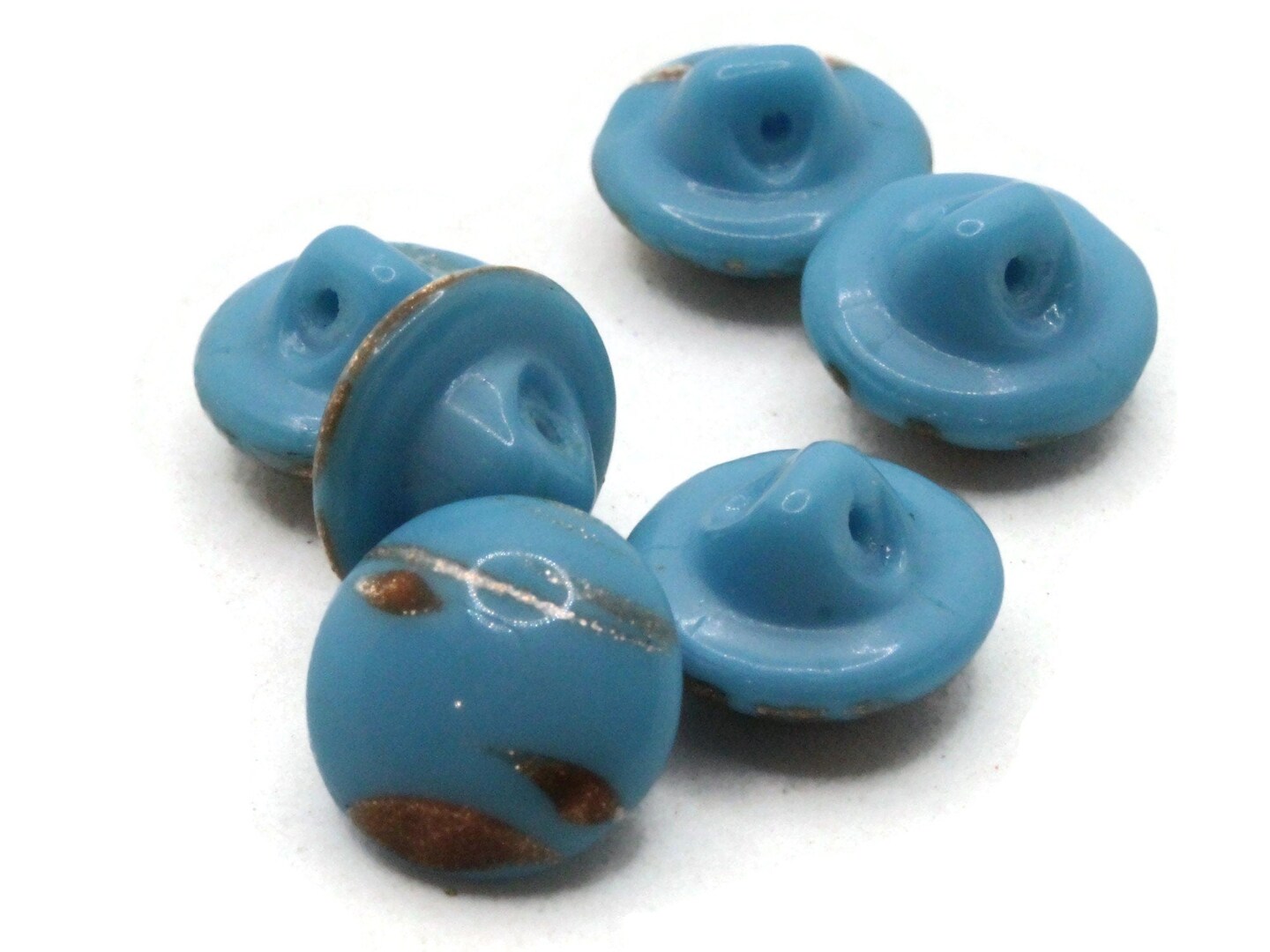 6 11mm Vintage Turquoise Blue and Gold Glass Shank Buttons Sewing Notions