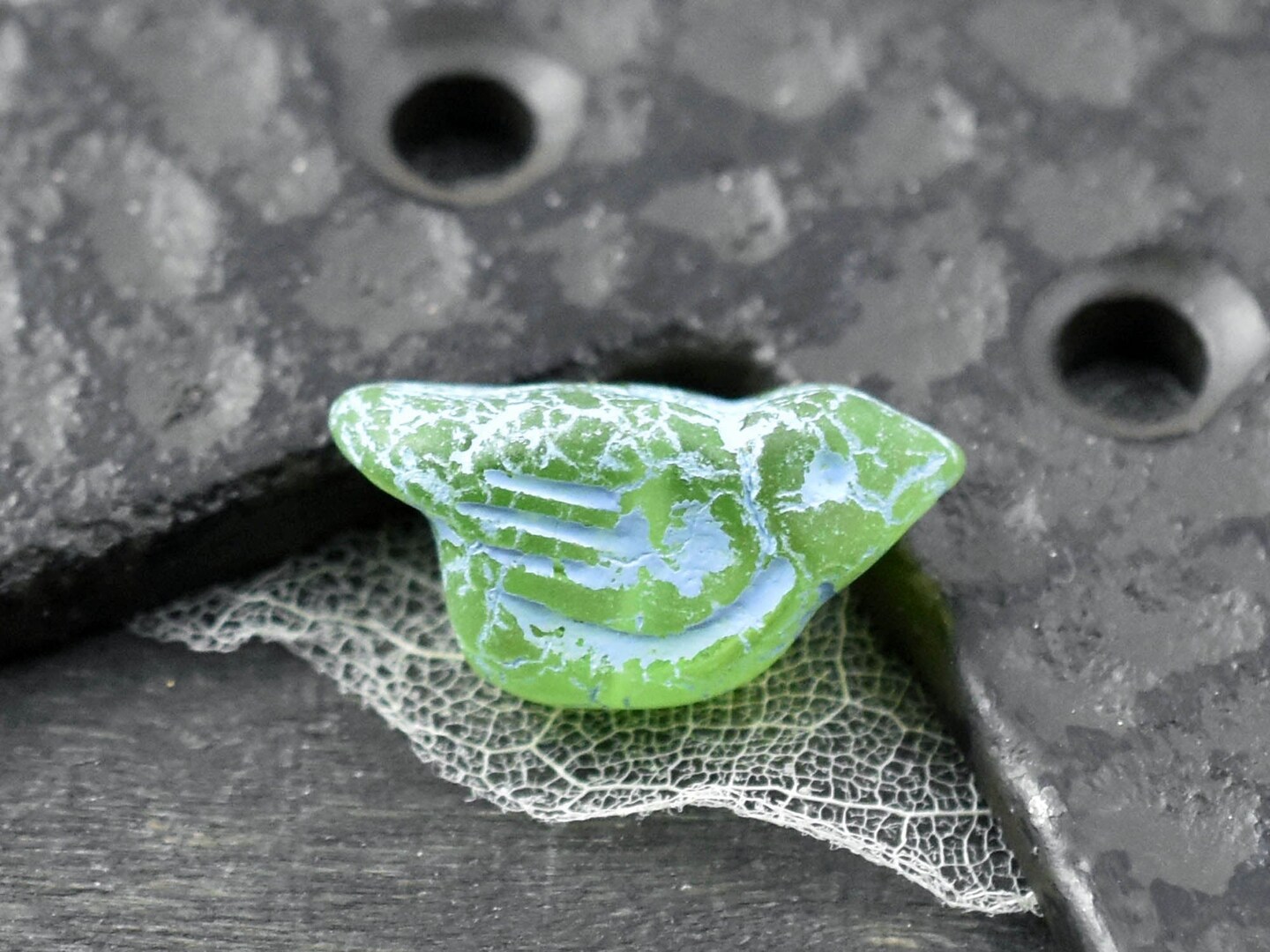 *6* 11x22mm Turquoise Washed Matte Green Apple Bird Beads
