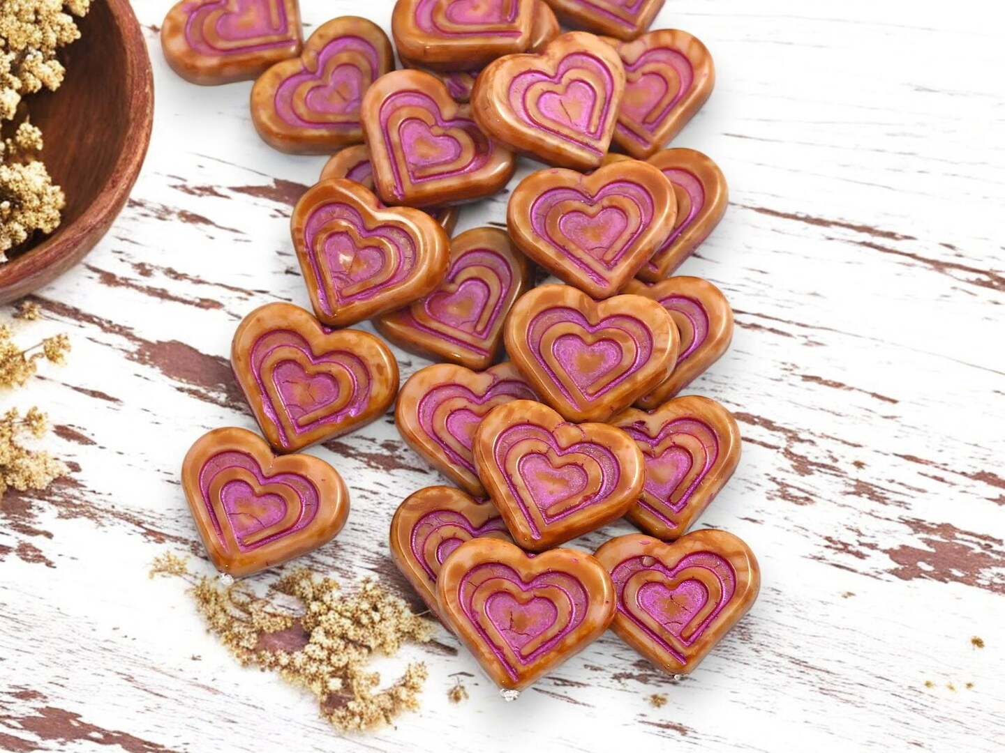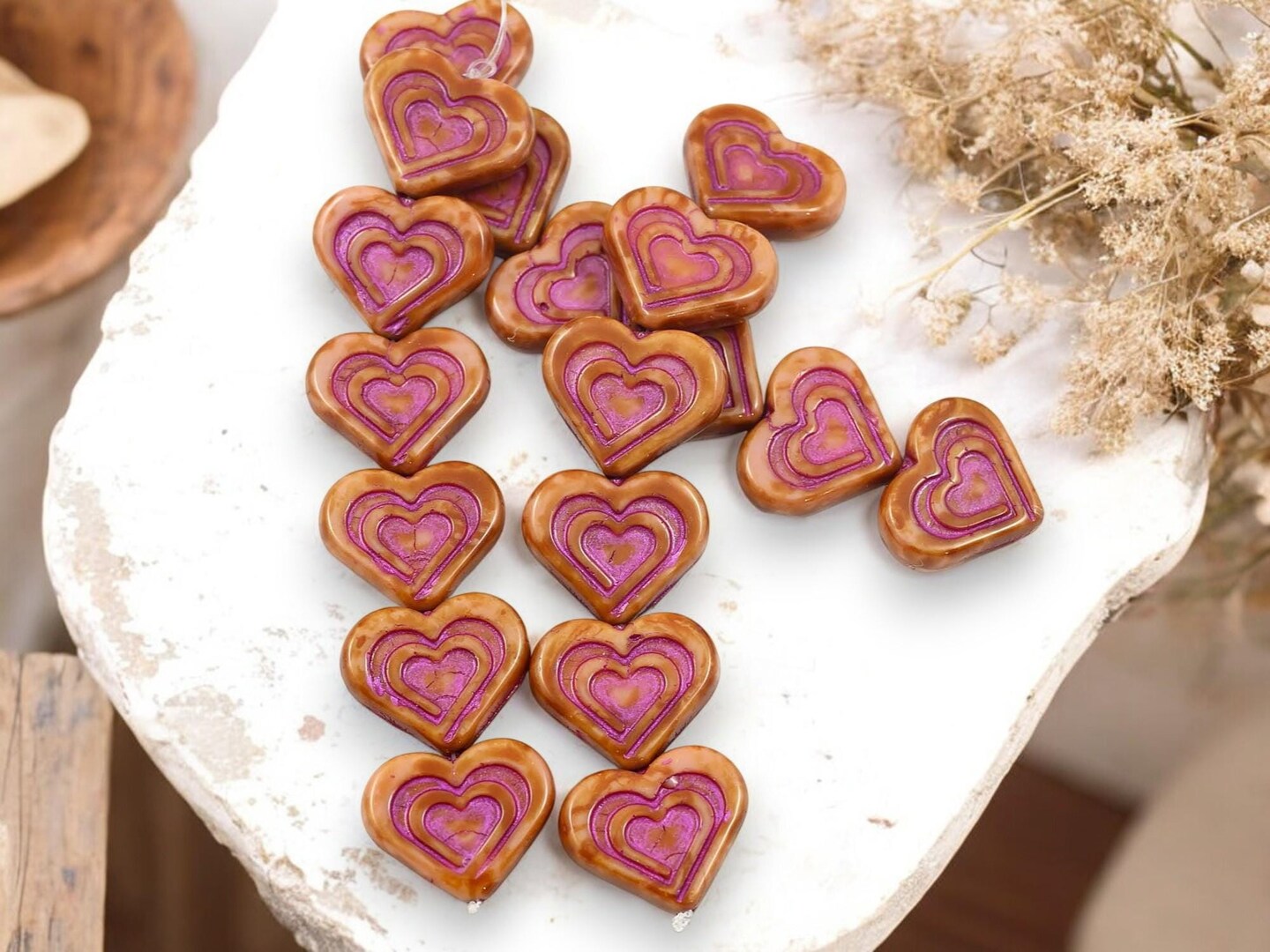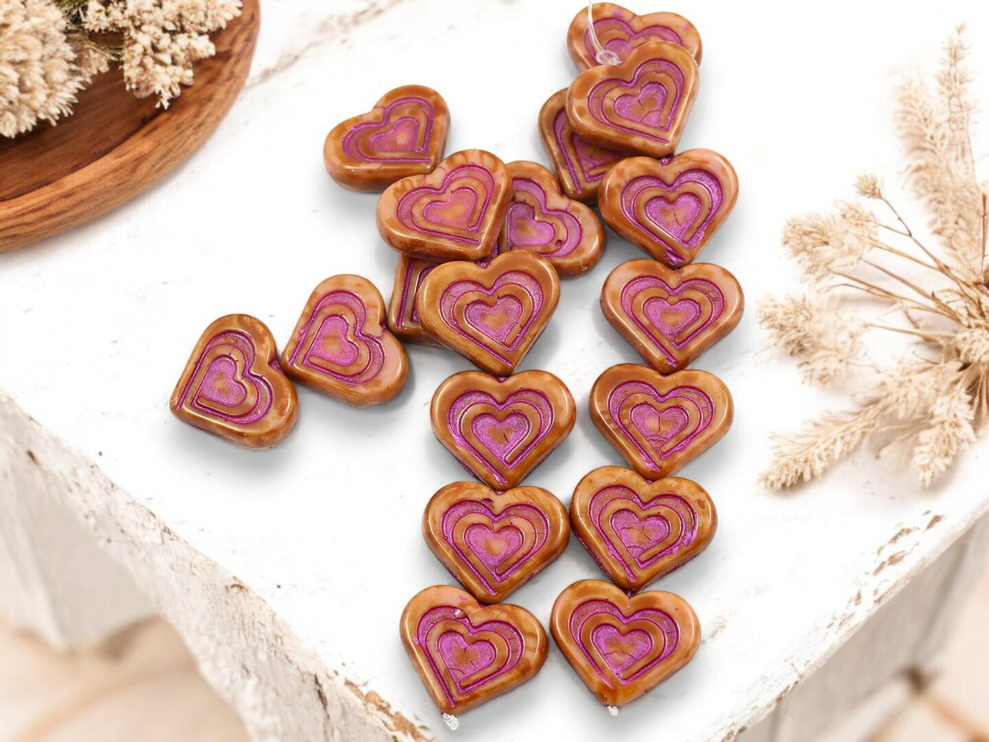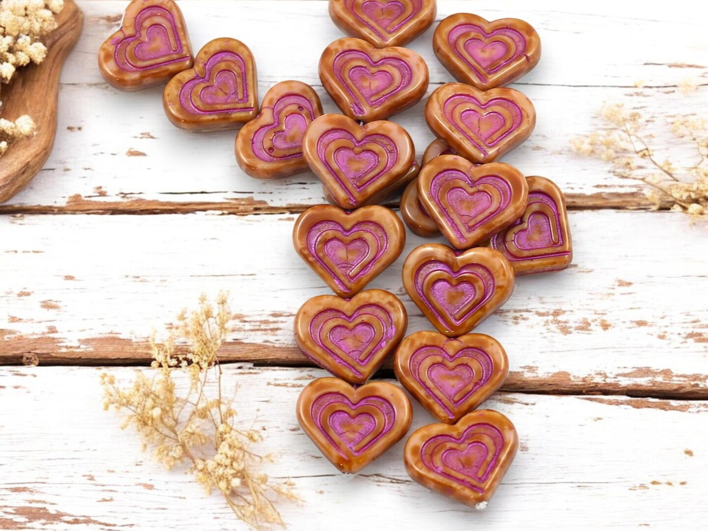 *6* 14x16mm Pink Washed Beige Picasso Heart Beads