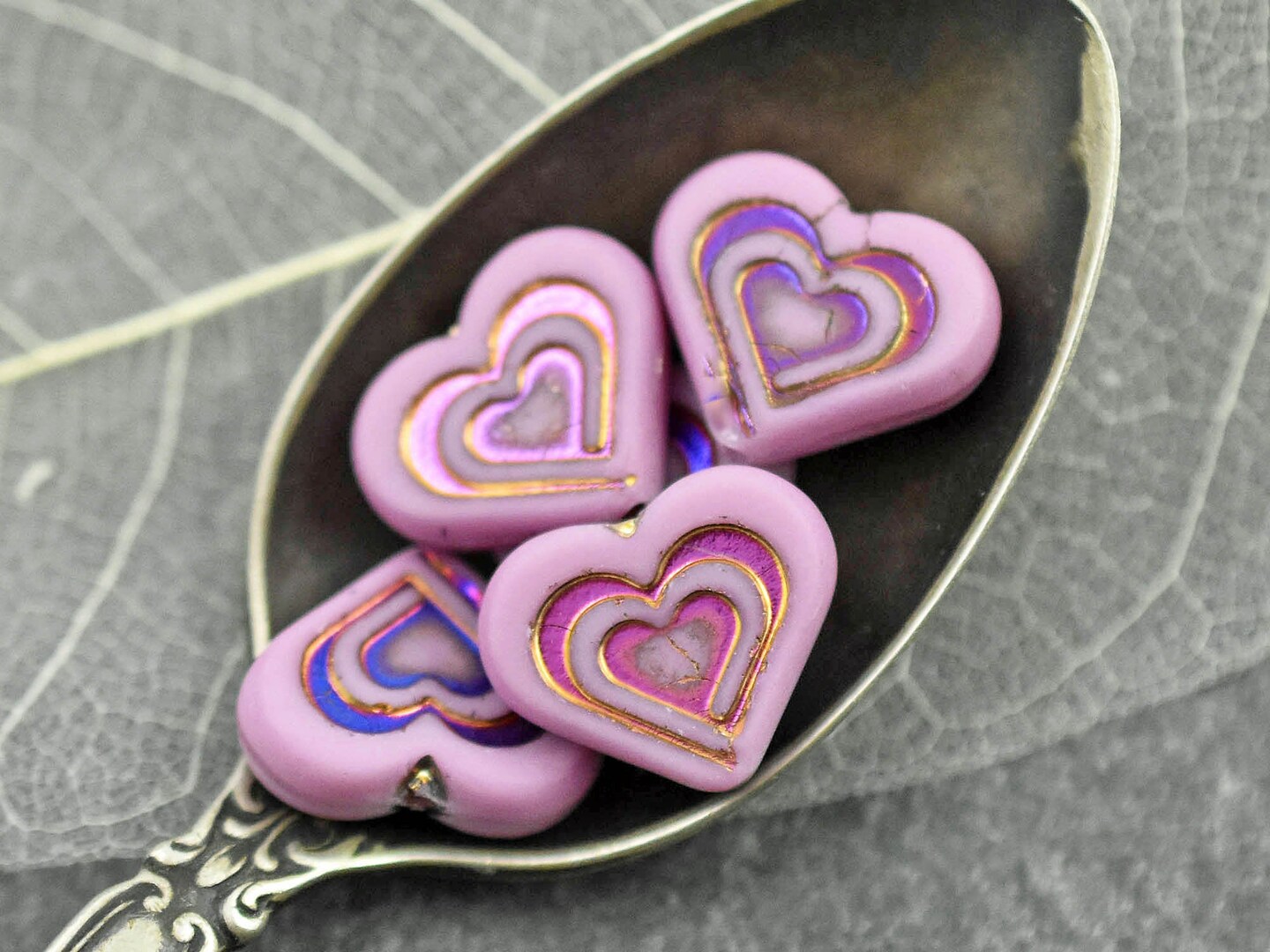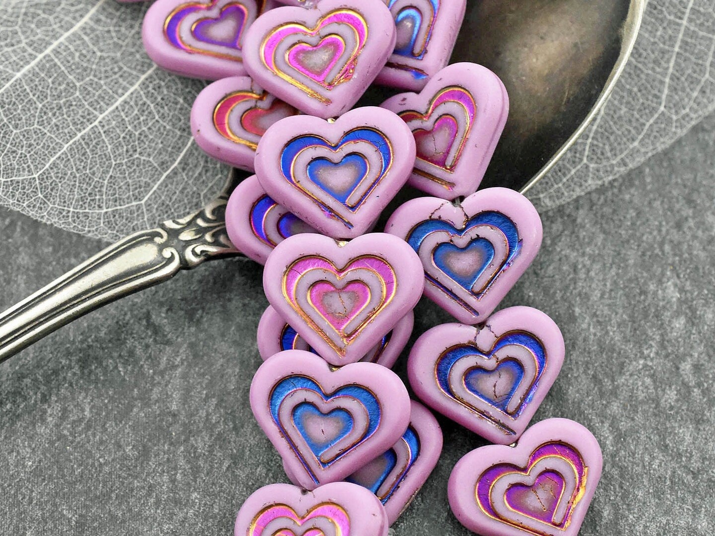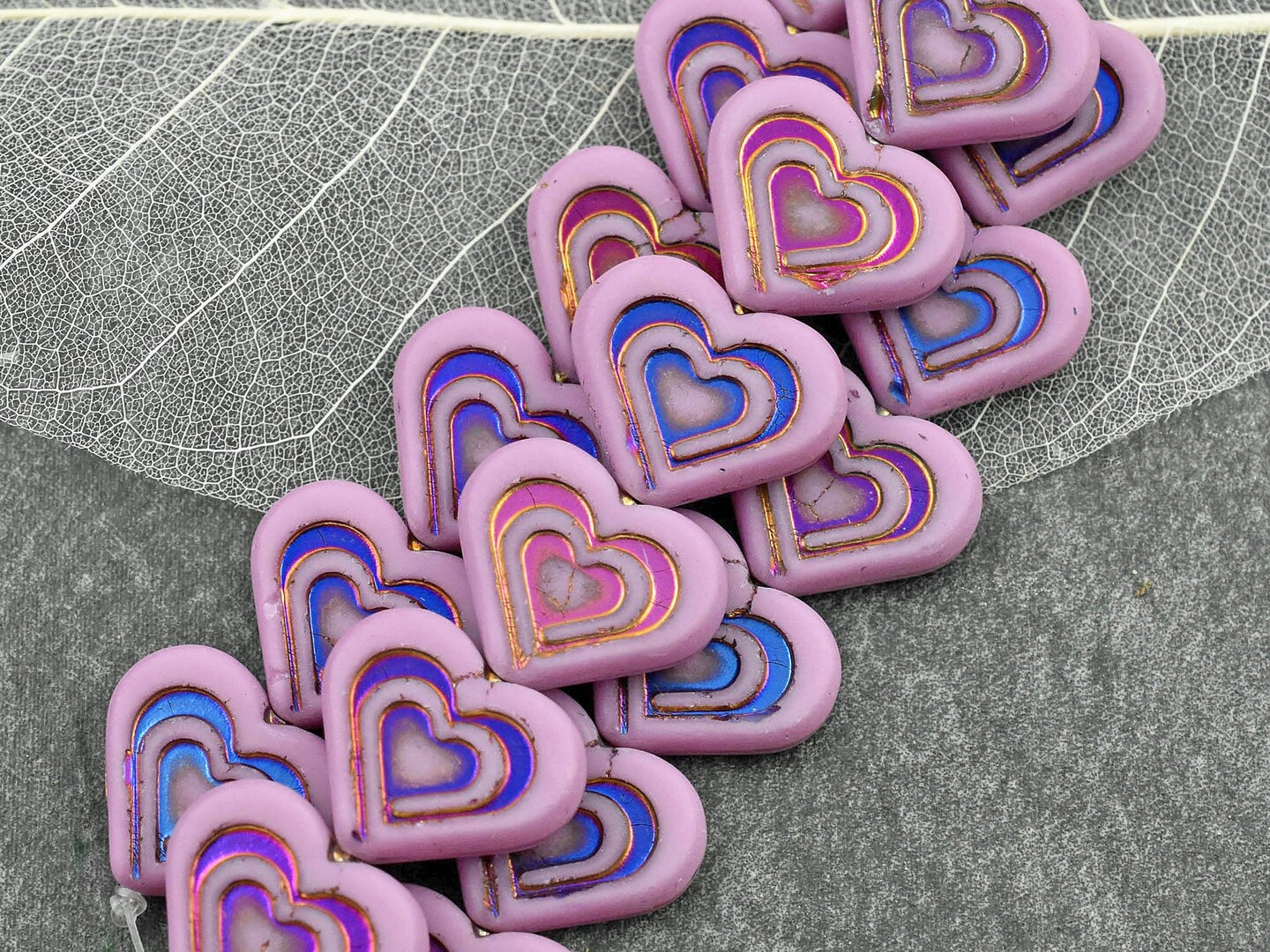 *6* 14x16mm Rainbow Metallic Washed Matte Pink Heart Beads